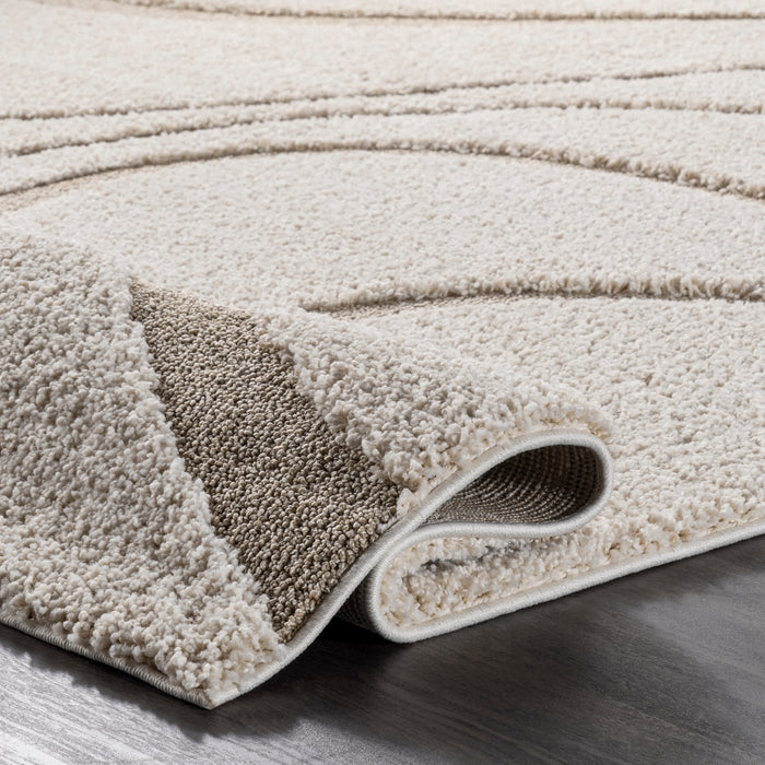 Add a sense of luxury and sophistication to your home with our modern shag area rug. This floor covering has a beautiful high/low weaving pattern with neutral color hues that will blend seamlessly with any existing décor. Crafted from durable synthetic fibers, this rug will be a trusted piece in your home. Create the home of your dreams with our pet-friendly and easy to care for area rugs.