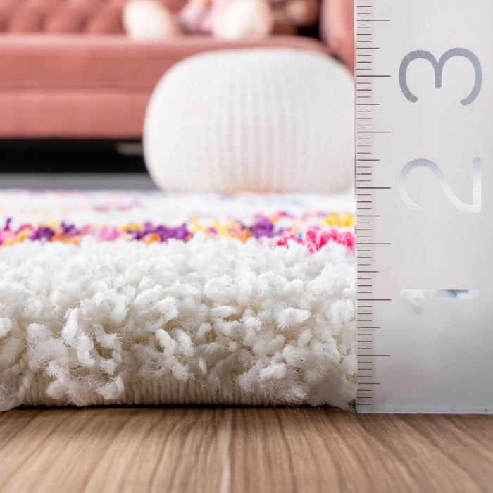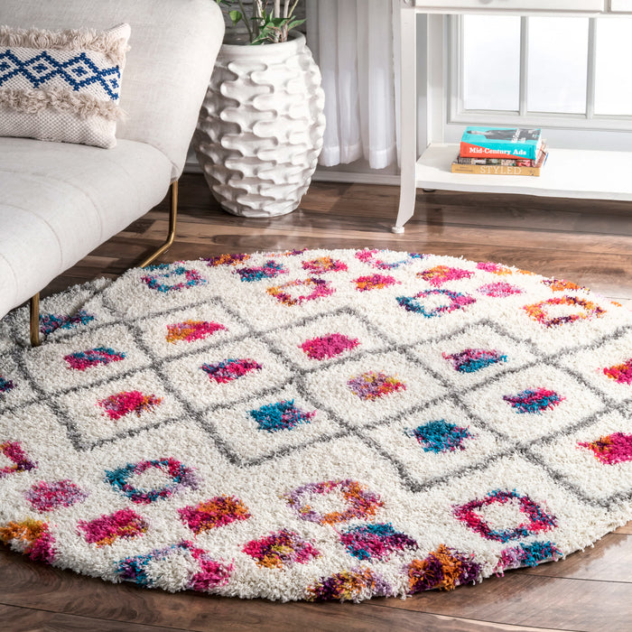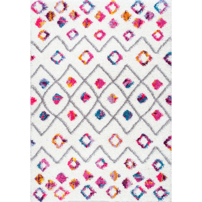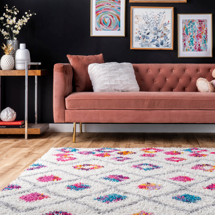 Give your decor a charming update with this shag area rug. Featuring a trellis and diamond pattern in a range of playful shades, the rug enlivens any space with Bohemian flair. With a plush shag pile, the rug is soft and luxurious underfoot. This rug is the perfect addition to your kitchen, living room, bedroom, and any other room inside your home.