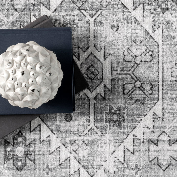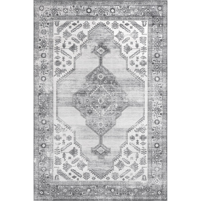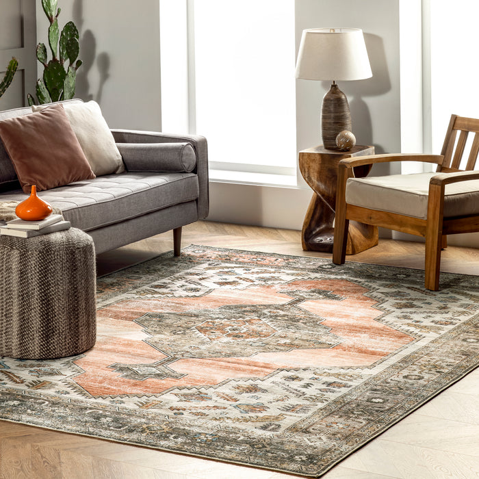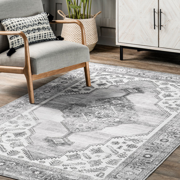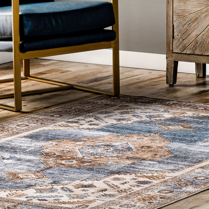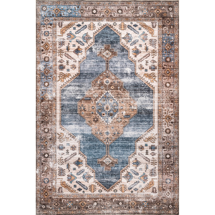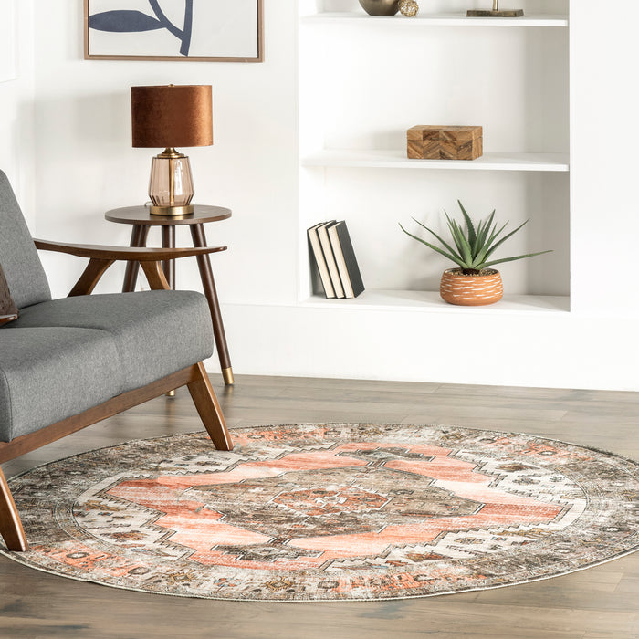 Gracie Distressed Medallion Machine Washable Area Rug