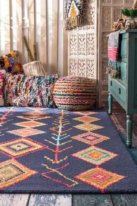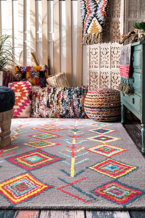 Infuse your interiors with a captivating blend of bohemian and contemporary style through our exquisite hand-tufted Moroccan diamond patterned rug. Crafted from a luxurious blend of wool and viscose, this rug offers a softness that invites warmth into your home. Originating from India and constructed with hard-wearing materials, it not only showcases exceptional beauty but also ensures durability. Revel in the plush underfoot experience provided by this lavish carpet, while its stunning pattern adds a distinctive flair to your home décor.