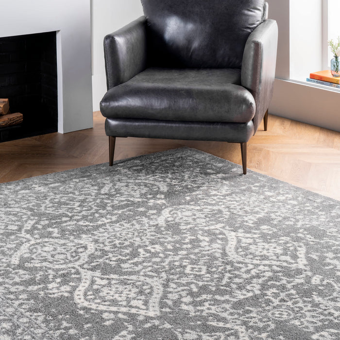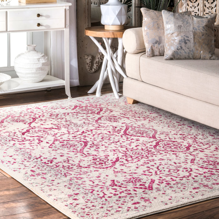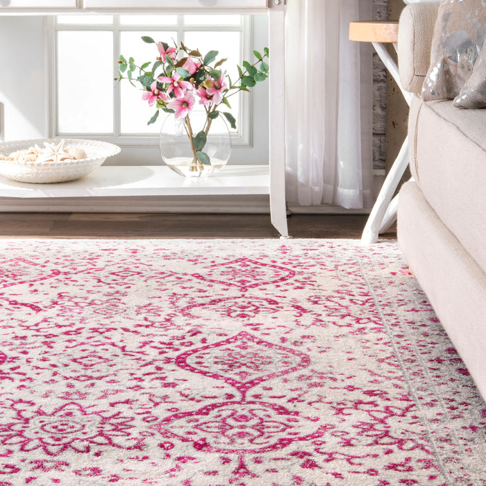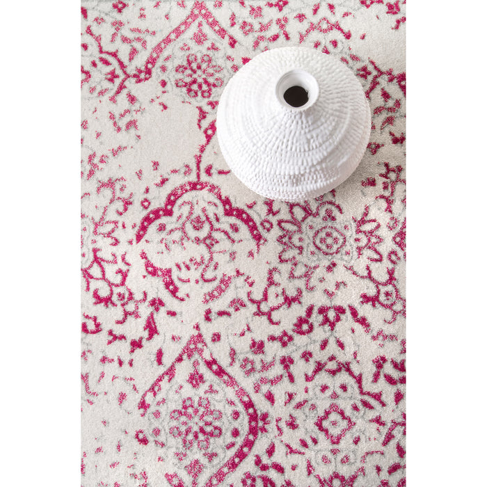 This intricate distressed floral design is the perfect centerpiece for your room. Machine made of durable polypropylene, you will have the refined look of a heirloom piece with the easy upkeep of a synthetic fiber. This design is available in a wide array of colors to suit your aesthetic.