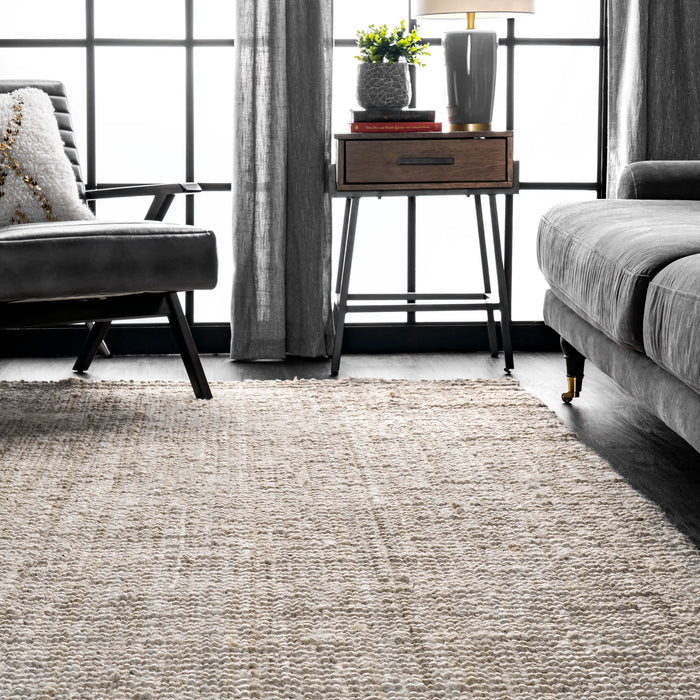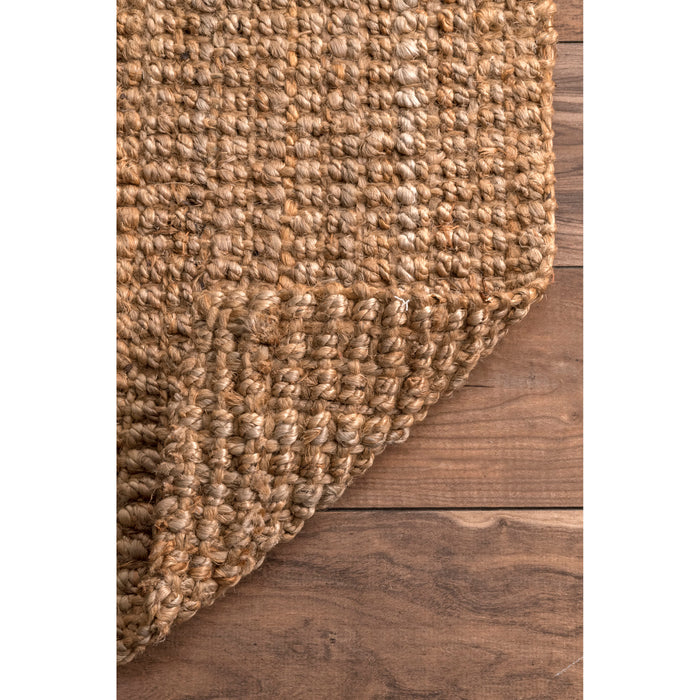 This 100 percent jute area rug is hand-made and will look stunning in either a coastal or farmhouse setting. This neutral, textured piece will bring a rustic, homey vibe to any space it's placed in. Versatile, this piece can be easily integrated into your living room or bedroom decor.