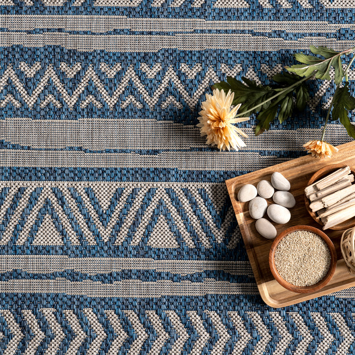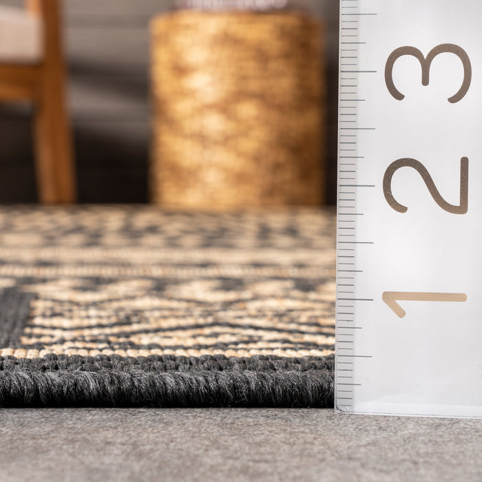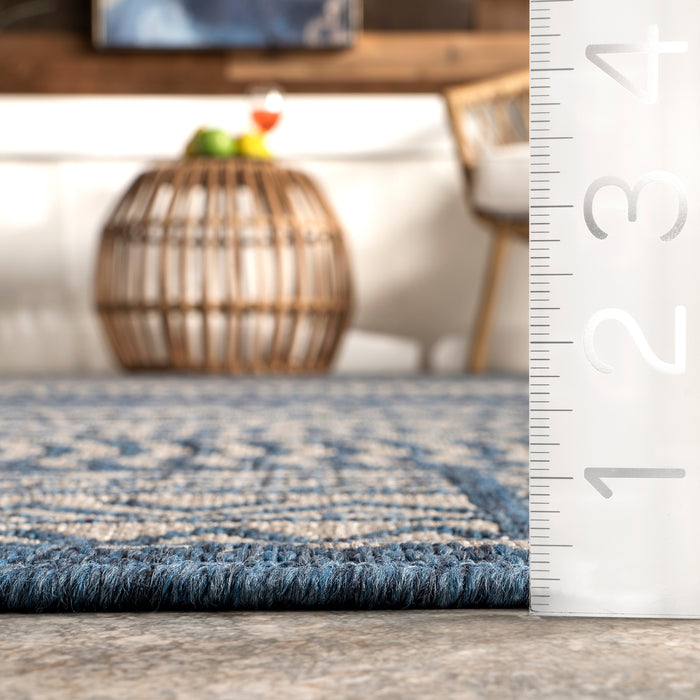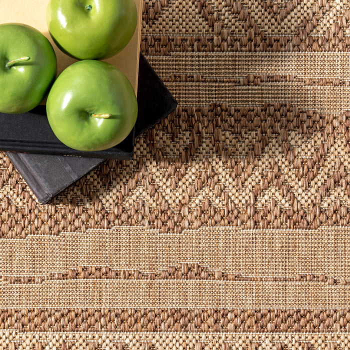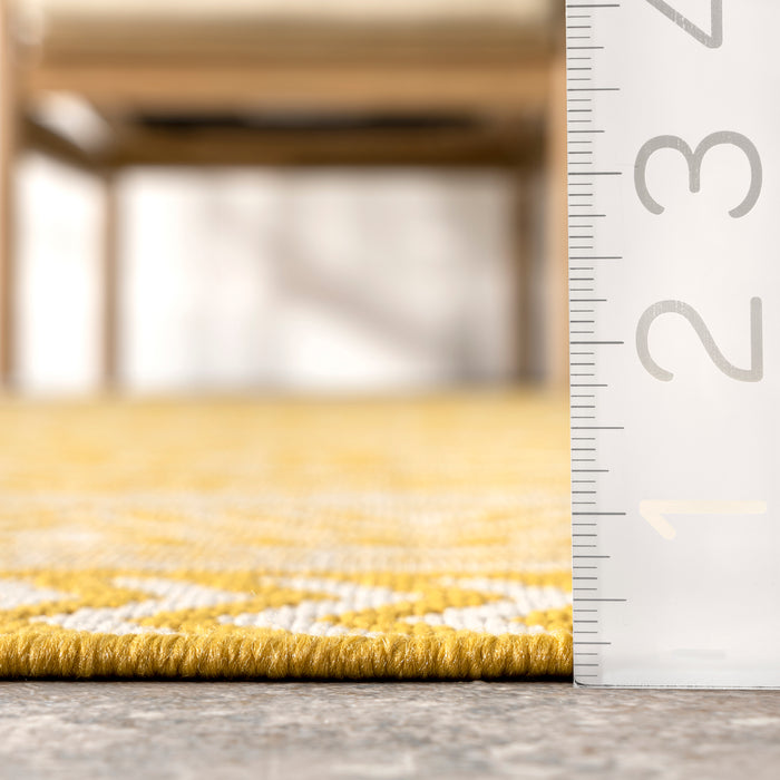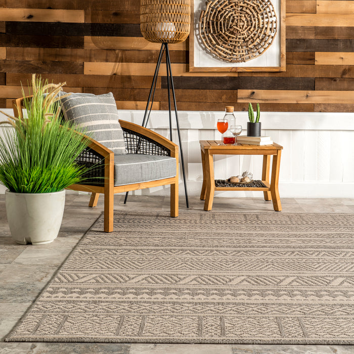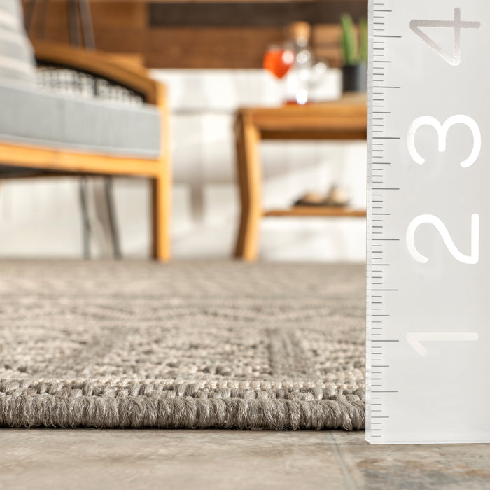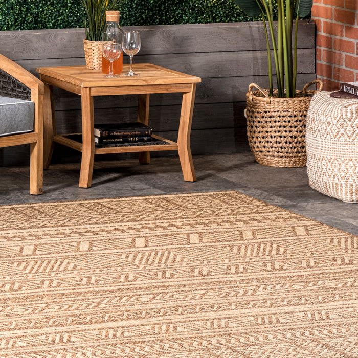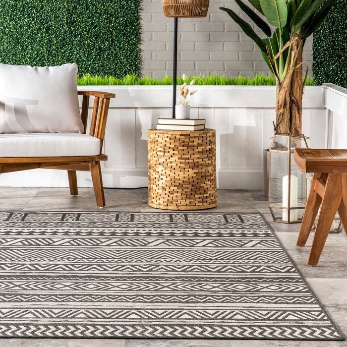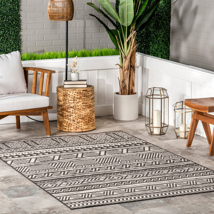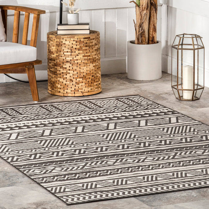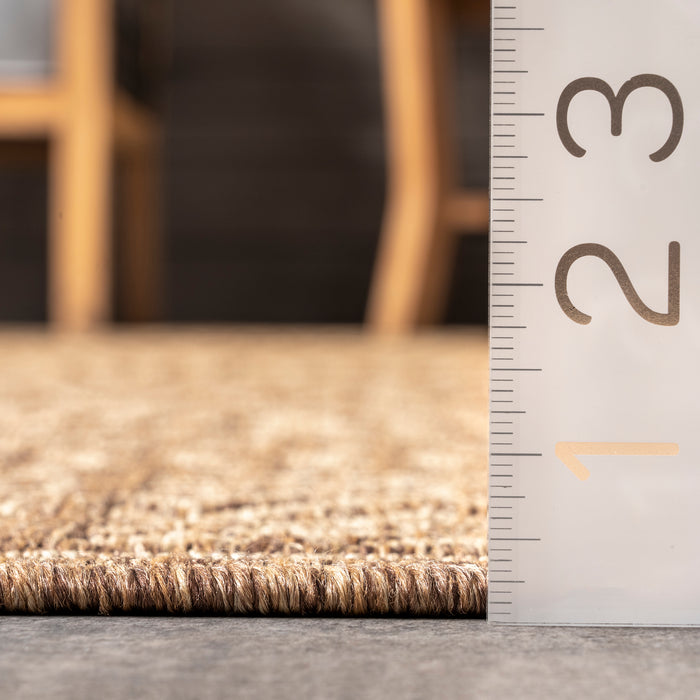 Complete your space with this transitional indoor/outdoor area rug. Made from durable synthetic materials, it resists stains, mold, mildew, and fading. Whether you place it on your patio for entertaining or to warm up your living room, this rug pairs perfectly with all décor from modern to bohemian. Create your own oasis with our easy to care for and pet-friendly area rugs.