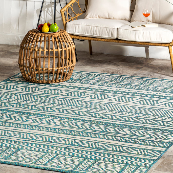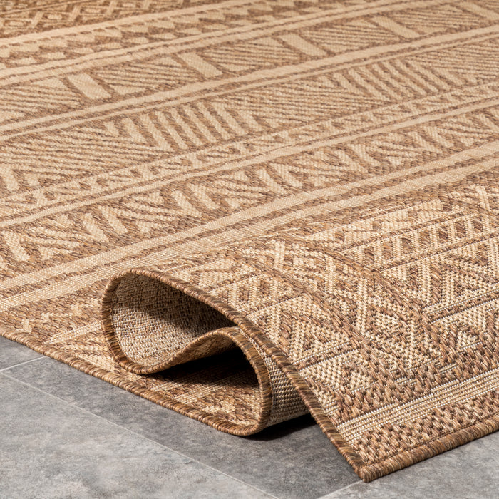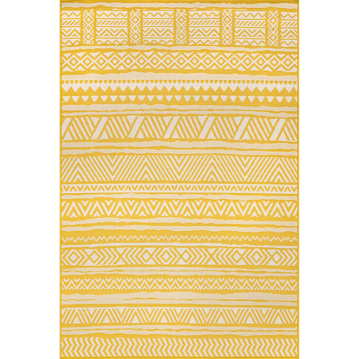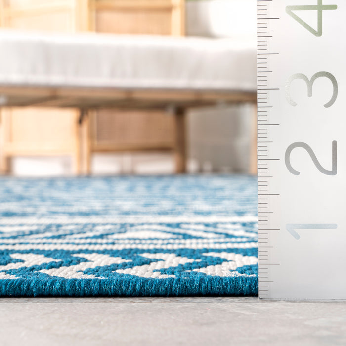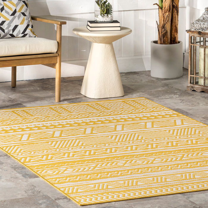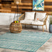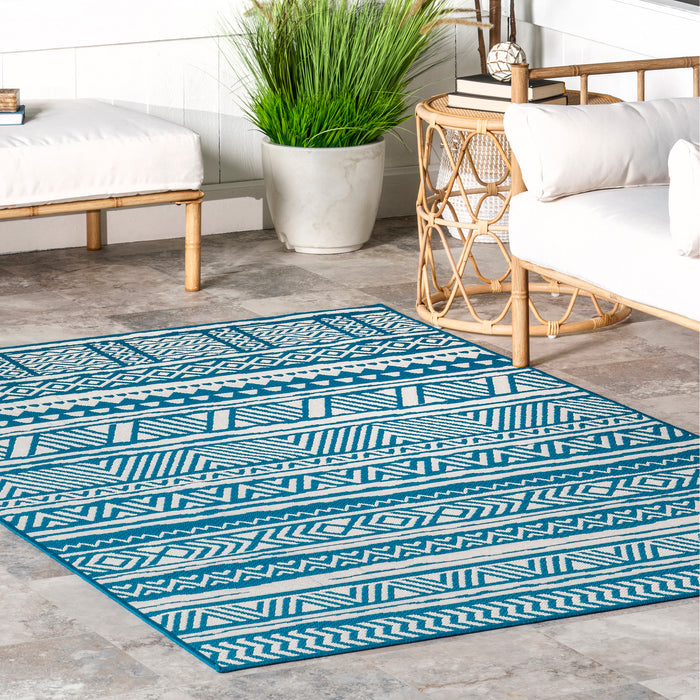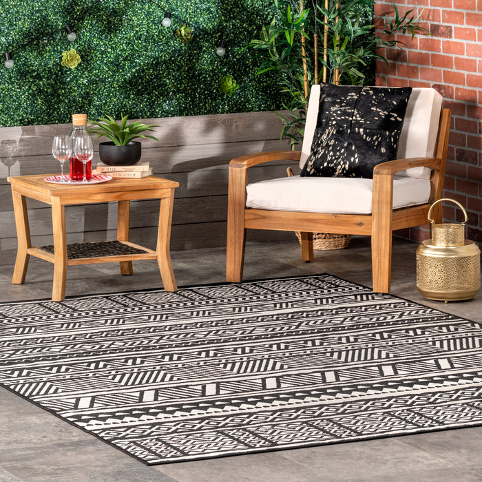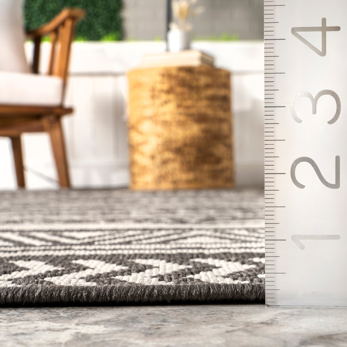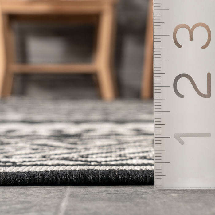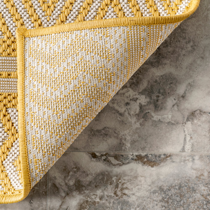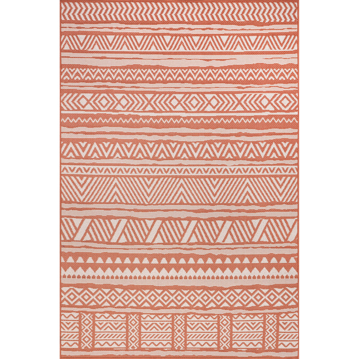 Complete your space with this transitional indoor/outdoor area rug. Made from durable synthetic materials, it resists stains, mold, mildew, and fading. Whether you place it on your patio for entertaining or to warm up your living room, this rug pairs perfectly with all décor from modern to bohemian. Create your own oasis with our easy to care for and pet-friendly area rugs.