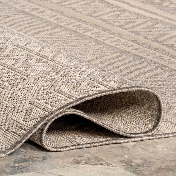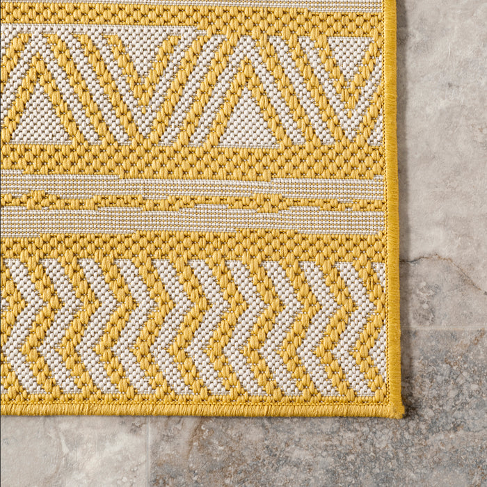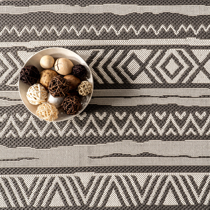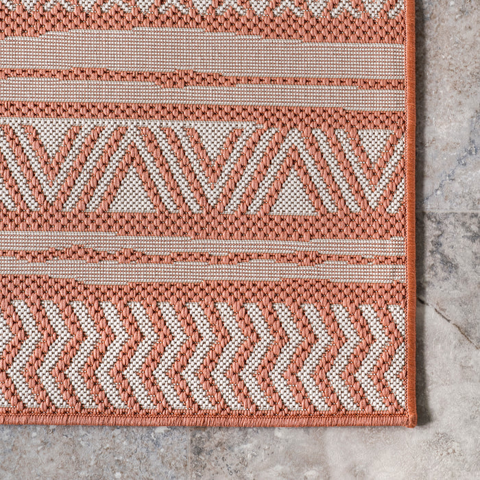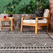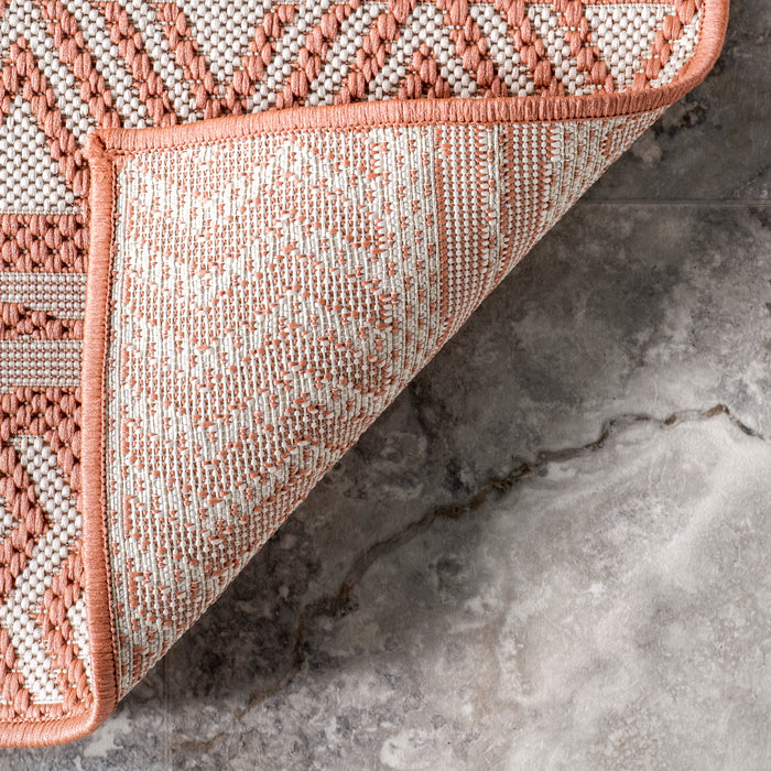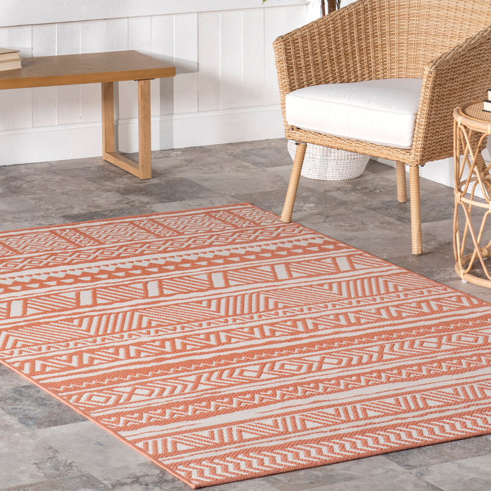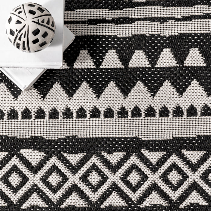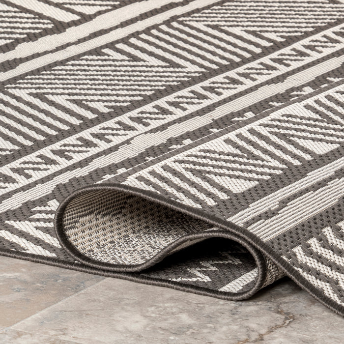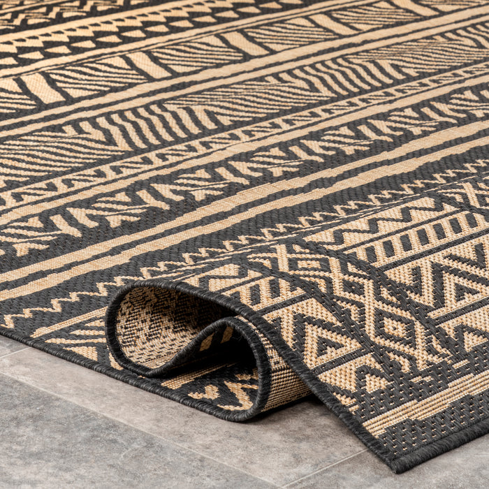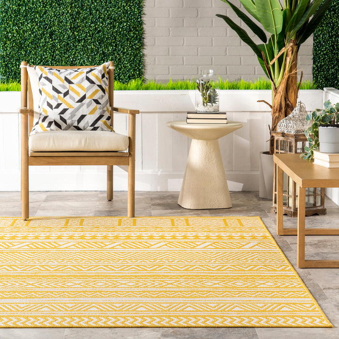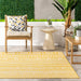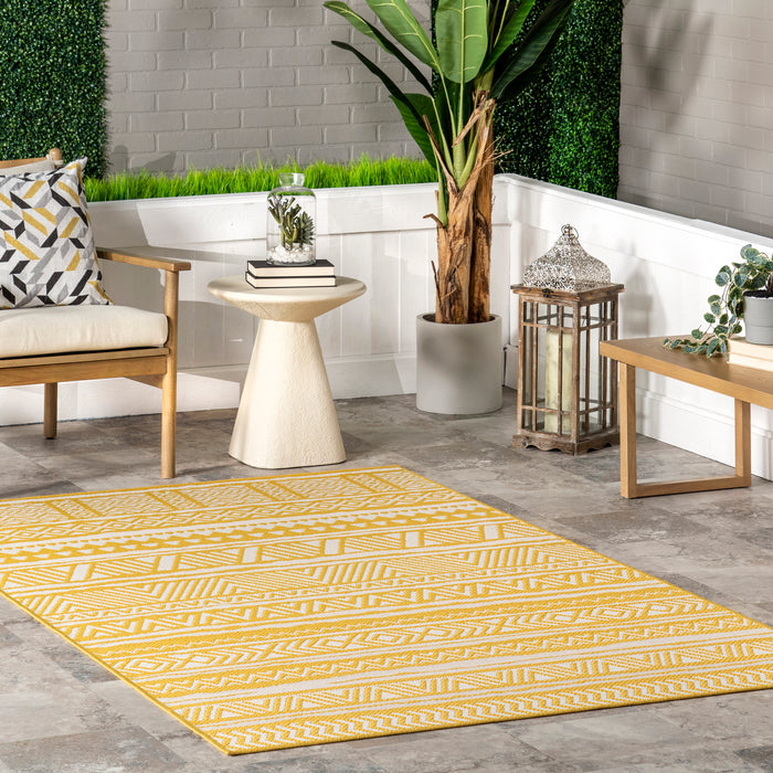 Complete your space with this transitional indoor/outdoor area rug. Made from durable synthetic materials, it resists stains, mold, mildew, and fading. Whether you place it on your patio for entertaining or to warm up your living room, this rug pairs perfectly with all décor from modern to bohemian. Create your own oasis with our easy to care for and pet-friendly area rugs.