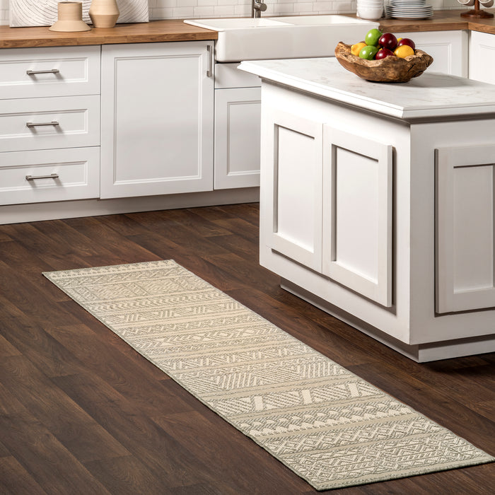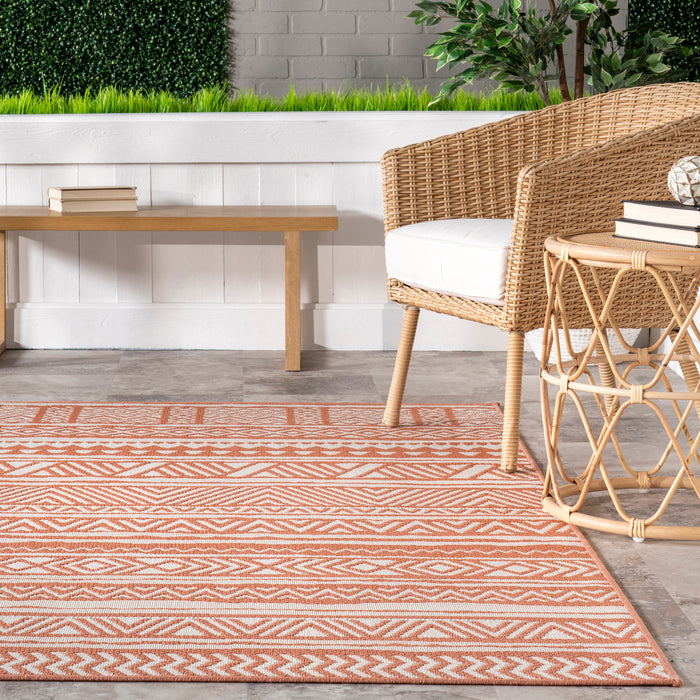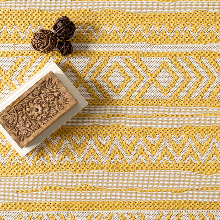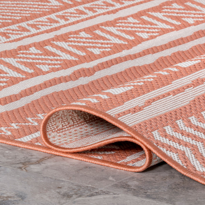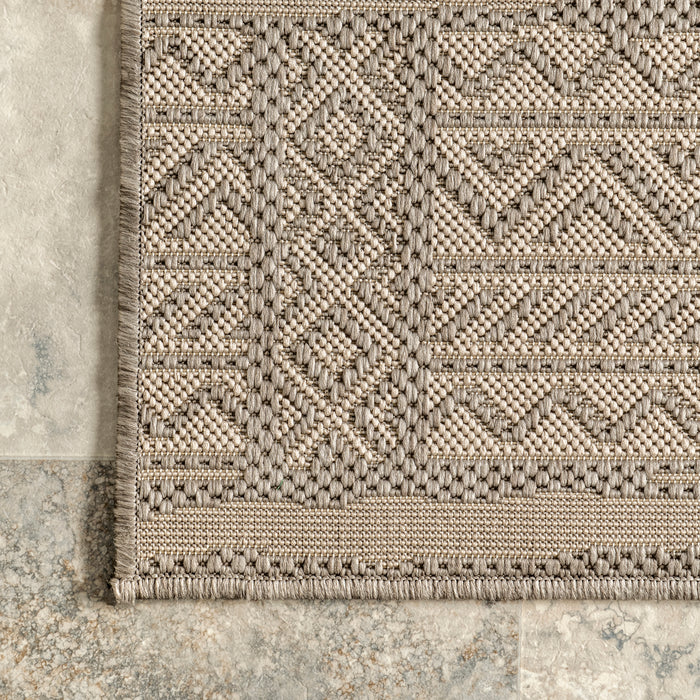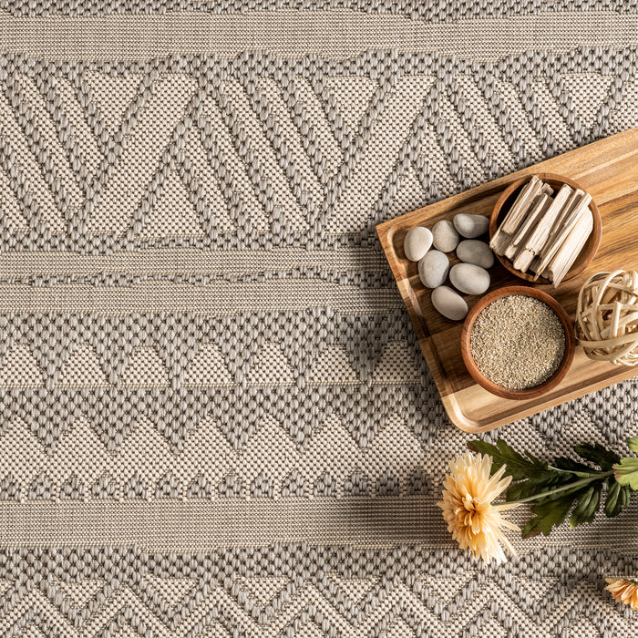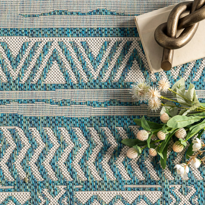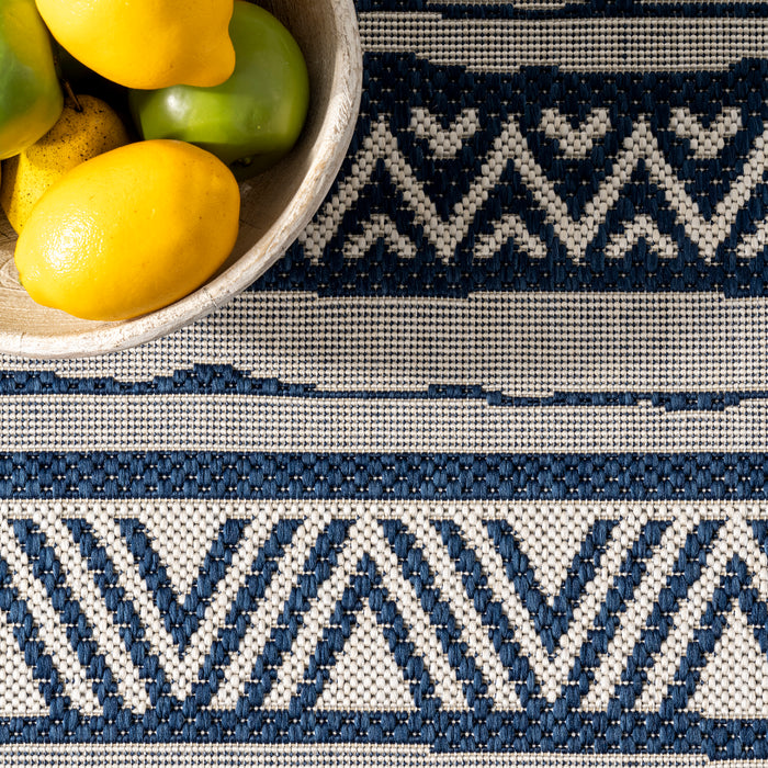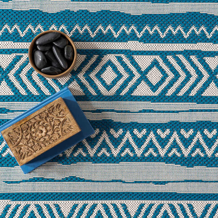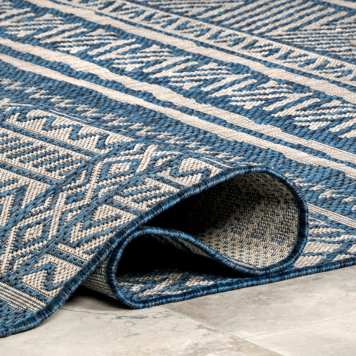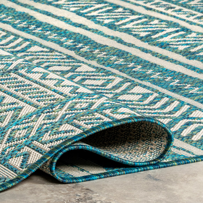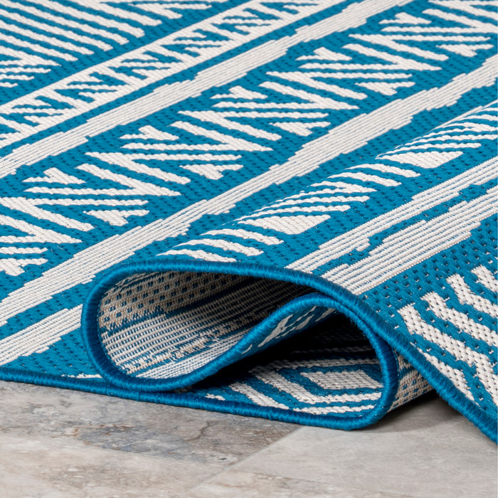 Complete your space with this transitional indoor/outdoor area rug. Made from durable synthetic materials, it resists stains, mold, mildew, and fading. Whether you place it on your patio for entertaining or to warm up your living room, this rug pairs perfectly with all décor from modern to bohemian. Create your own oasis with our easy to care for and pet-friendly area rugs.
