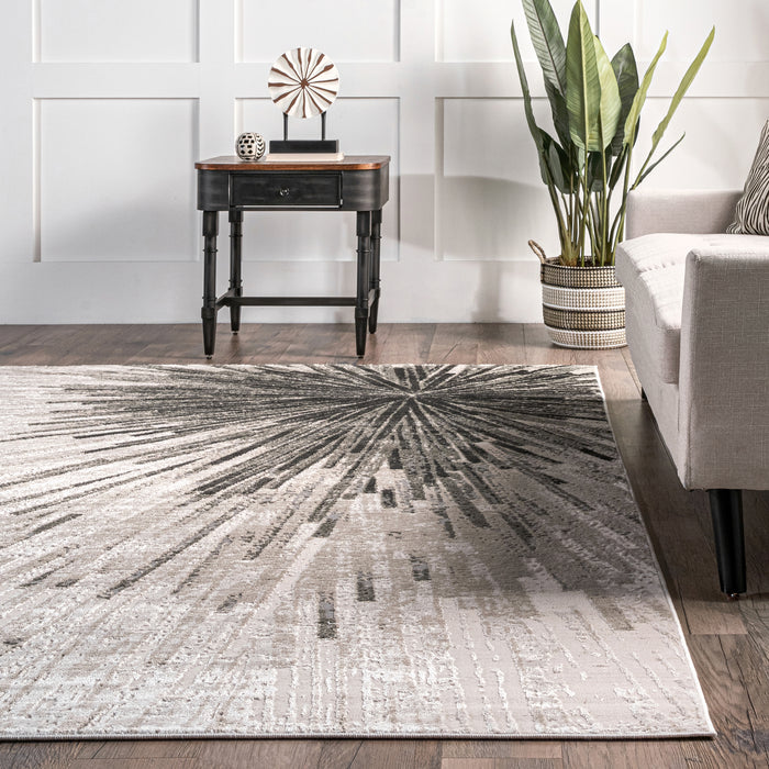 Introduce a stylish touch to your space with this contemporary area rug. It showcases an abstract pattern, infusing a modern, artistic vibe. The neutral color palette offers versatility, complementing various decor styles. This floor covering is made from a blend of recycled polypropylene and polyester, it combines durability with plush comfort and is perfect for any space from your living room to bedroom.