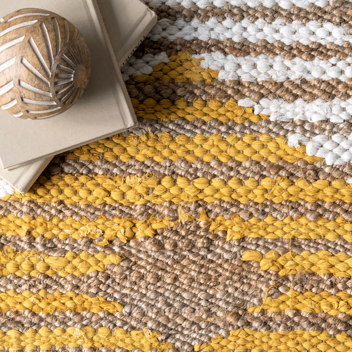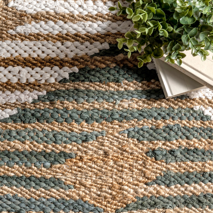 This cotton and jute rug perfectly mixes a natural feel with beauty and elegance. The cotton blue denim and natural jute colors mix beautifully to create an eye-catching centerpiece for your room.