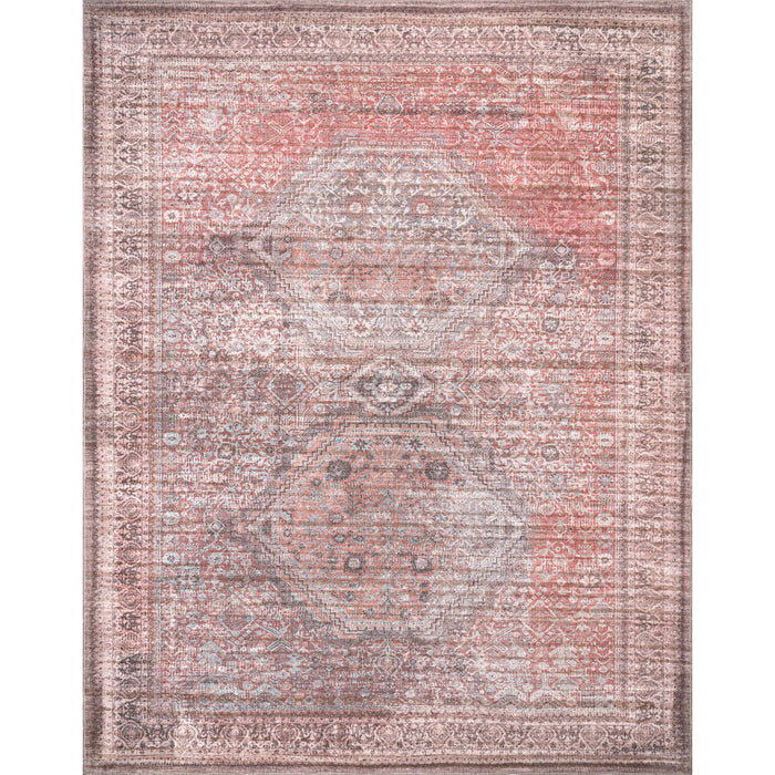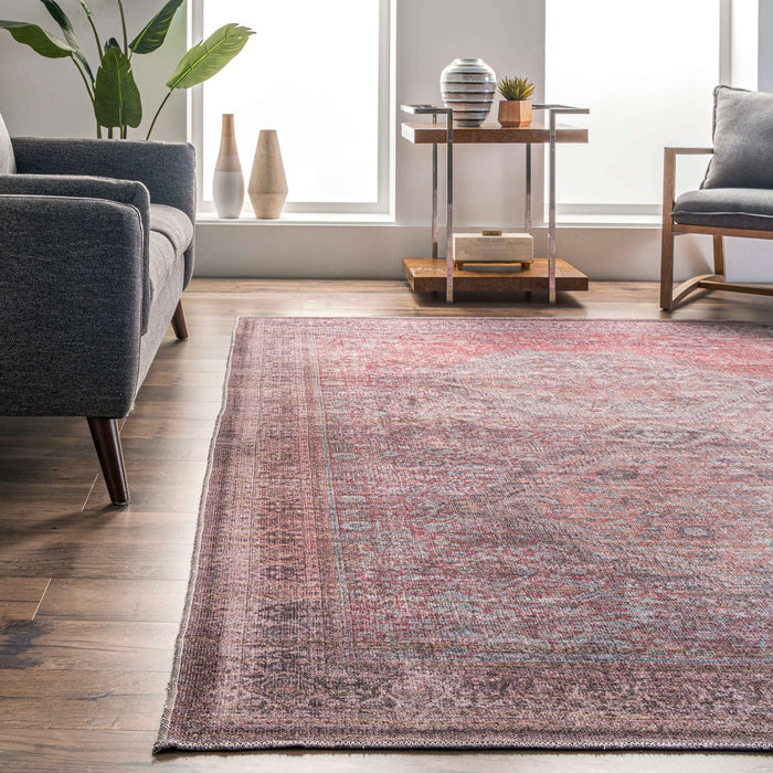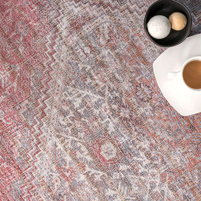 Justine Machine Washable Faded Geometric Medallion Area Rug
