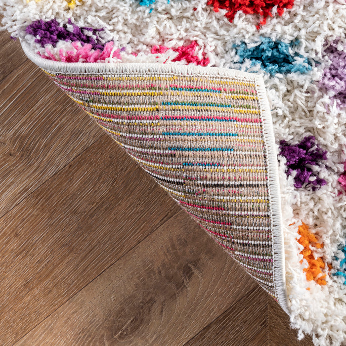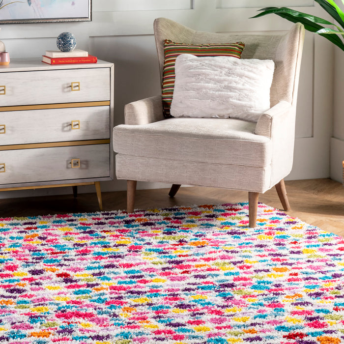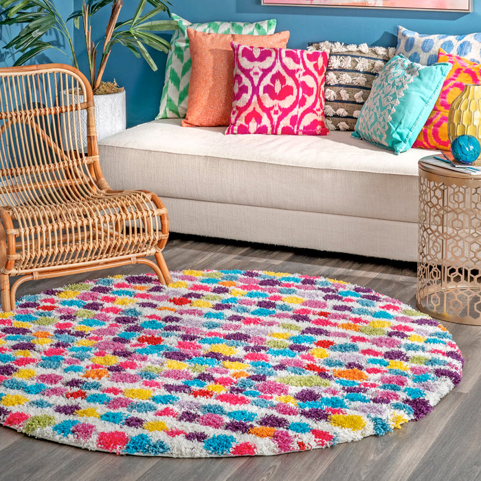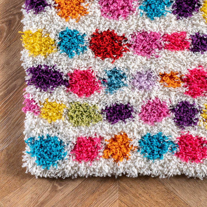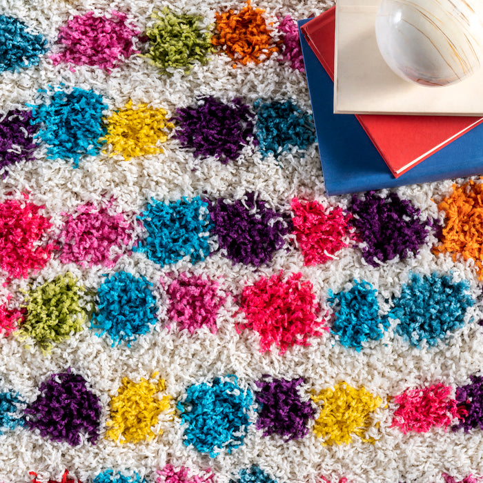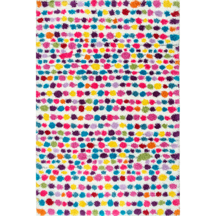 Give yourself over to arresting, brilliant color when you add this fun and vibrant area rug to your home. This shag rug comes alive with multicolored polka dots in rainbow hues that add a sunny touch to any room. Polypropylene construction lets the rug stand up against heavy foot traffic, so it keeps its beautiful look in the busiest spaces.