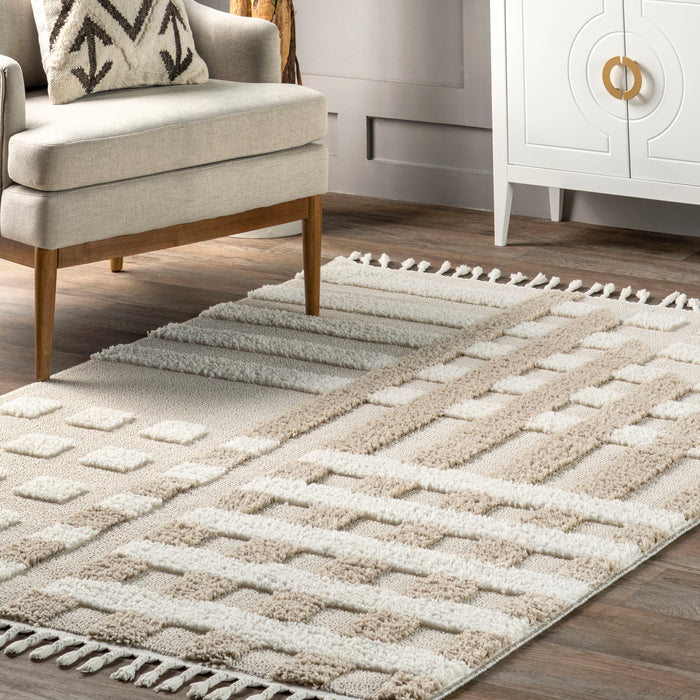 - With a plush high/low pile height of 1.1" and 2.76" long tassels lining both ends, this gorgeous rug is incredibly soft and cozy underfoot