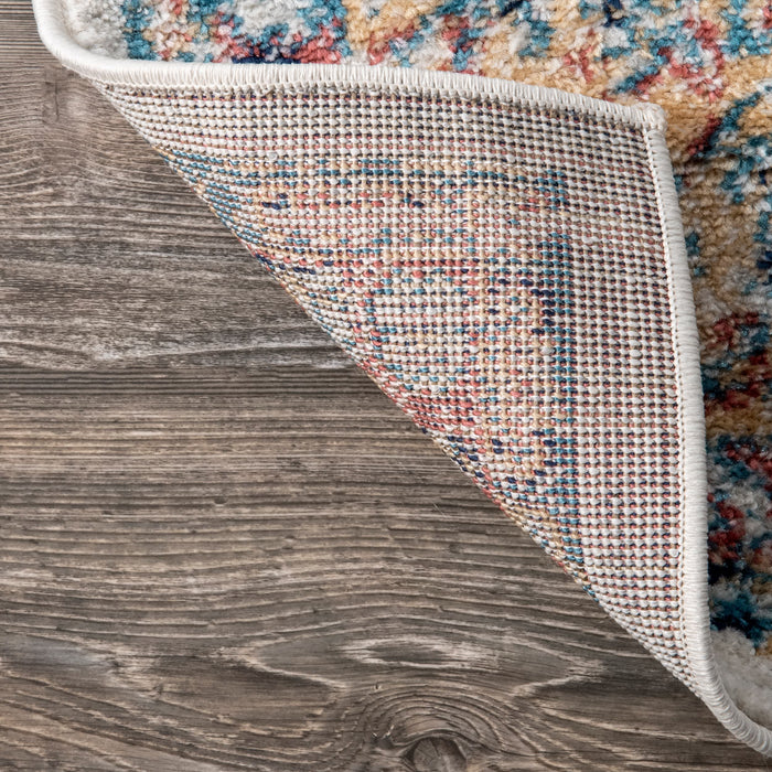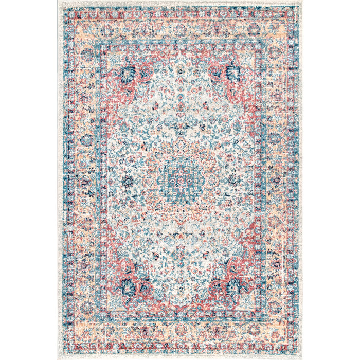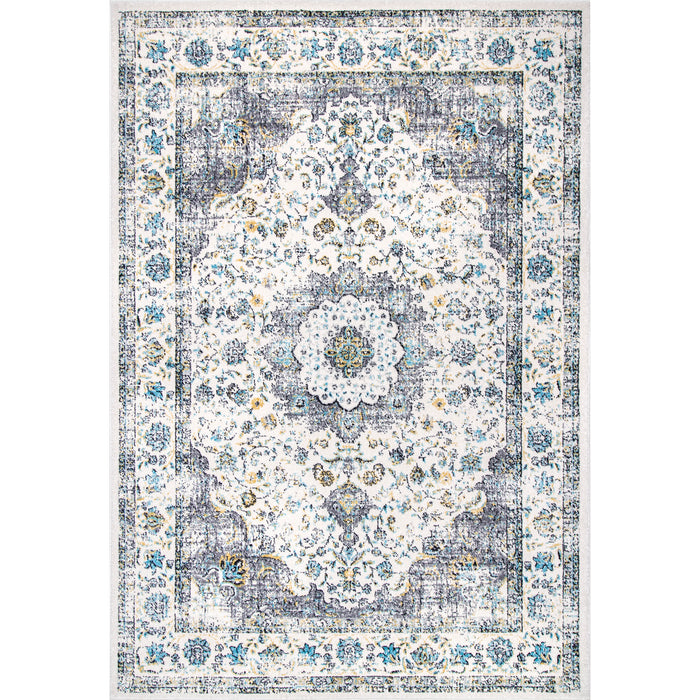 This subtly distressed medallion blends a classic traditional pattern with an updated style and functional comfort. This design is available in a wide array of colors to suit your aesthetic.