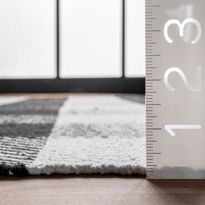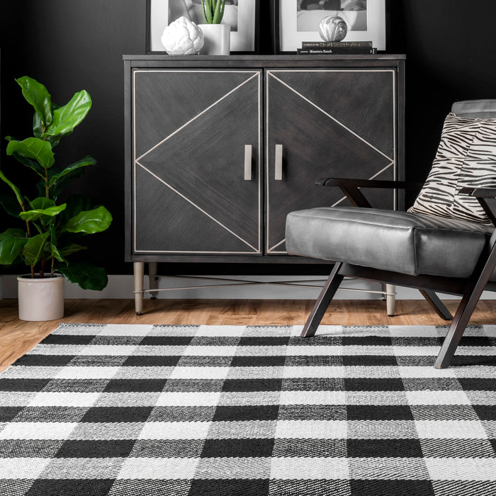 Who doesn’t love a touch of buffalo plaid? This timeless pattern will stand out with its contrasting black and white checkered design. This 100% cotton flatweave rug is the perfect lightweight floor covering.