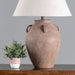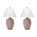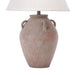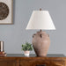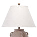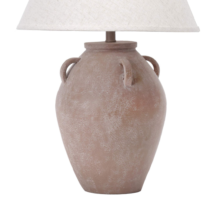 Top off a side table with a decorative farmhouse style table lamp. A 29-inch tall resin urn shaped base will fit easily onto your table, desk, or nightstand. A simple fabric empire shade pops on the top of this lamp easily, creating a balanced look with diffused light.