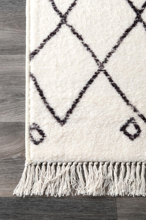 An ode to nomadic iconography, the Majesty collection revives symbolic elements of Moroccan tribal textiles. A soft yet unassuming nylon pile is finished at both ends with tassels to round out this classic look.