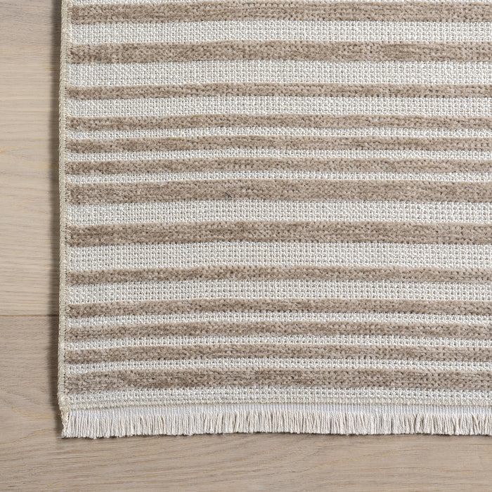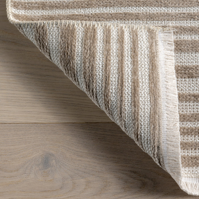 The transitional striped indoor rug is a versatile and practical choice for any high-traffic area in your home. Made from a durable blend of 51% polyester, 28% cotton, 13% acrylic, and 8% viscose, this machine washable rug is perfect for pet-friendly and stain-resistant environments. Its reversible design allows you to easily switch up the look in your bedroom, living room, dining room, hallway, or kitchen, making it a great addition to any decor. The washable rug is easy to maintain, ensuring that your space stays clean and fresh, even in high-traffic areas. As a washable rug, it provides the perfect balance of style and functionality, making it an ideal addition to any modern home.
