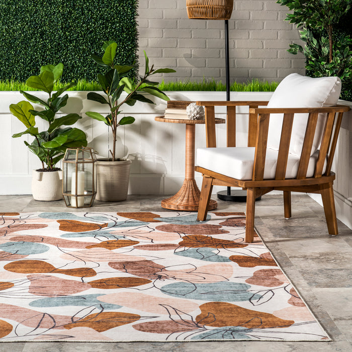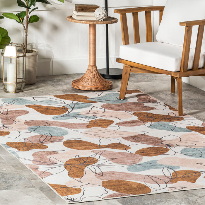 Deisy Abstract Floral Machine Washable Indoor/Outdoor Area Rug