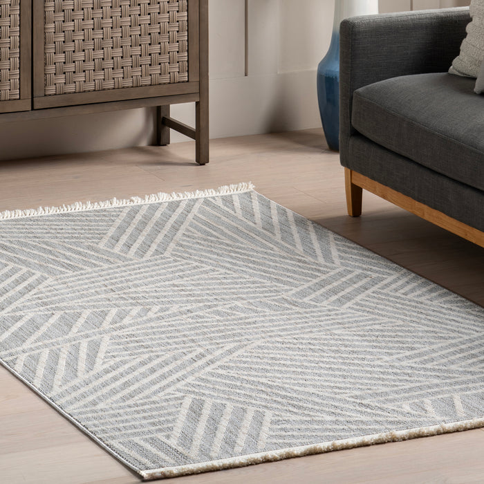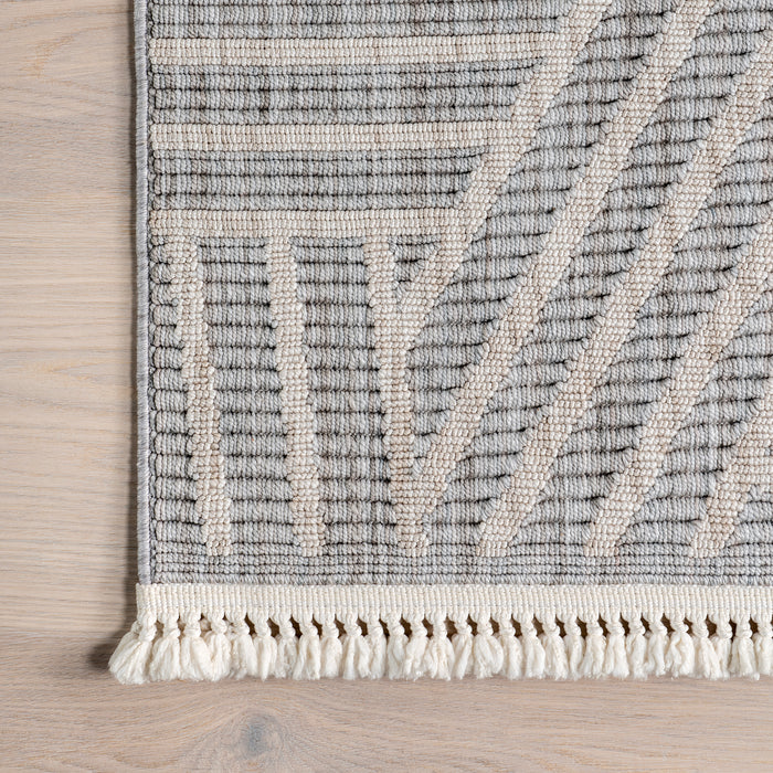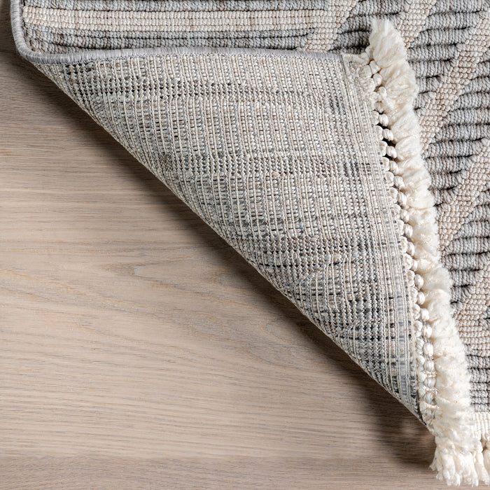 Indulge in timeless elegance with the checkered pattern of this rug, a hallmark of refined taste in any room. Delicately woven squares create a visually captivating design that effortlessly complements diverse decor styles. The pastel palette instills serenity, ideal for crafting a calm and inviting ambiance. What truly distinguishes this rug is its subtle luster, as carefully selected fibers offer a gentle sheen, adding an understated touch of sophistication. This slight shimmer enriches the rug's luxurious appearance, catching the eye and elevating the entire room. Tasseled ends further enhance its allure, infusing an extra layer of elegance and playfulness into the design.