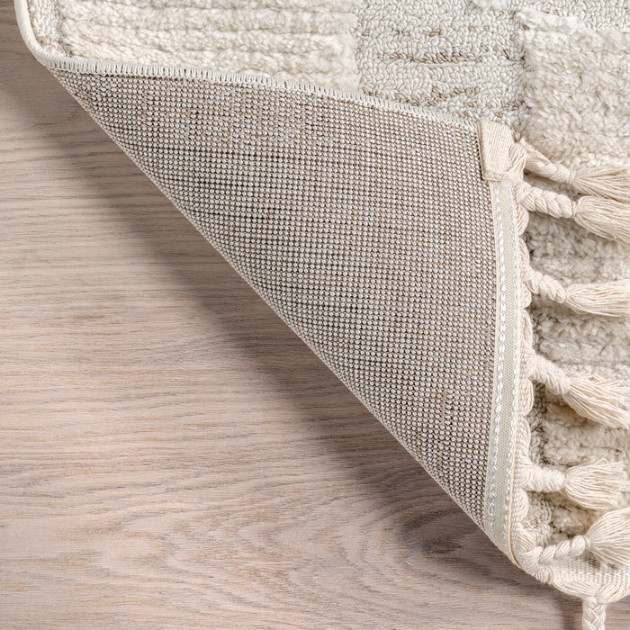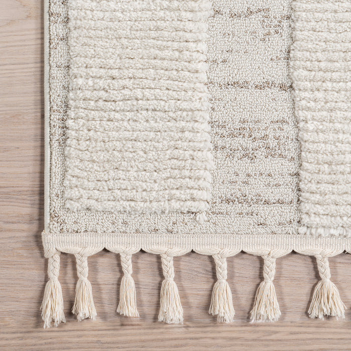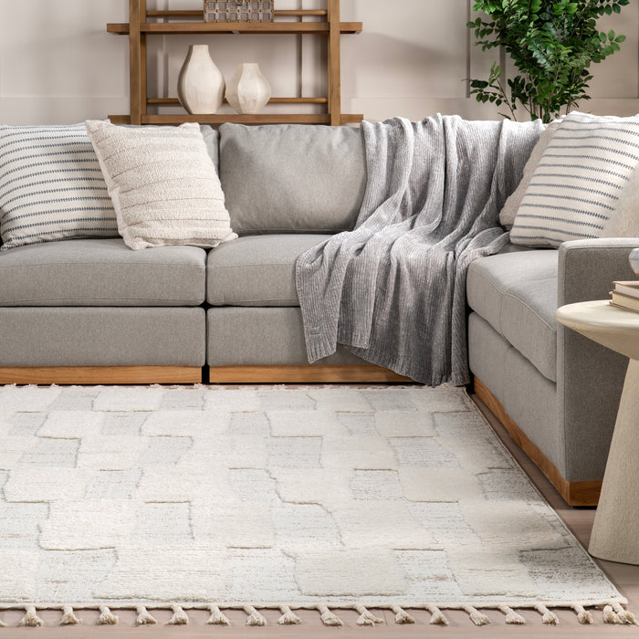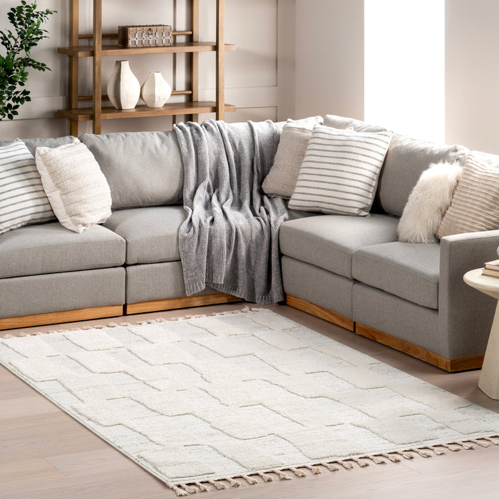Elevate the allure of your living area with our immaculate high-low geometric rug adorned with tassels. It's not just a rug; it's an invitation to experience unparalleled comfort and durability. Immerse your feet in its sumptuousness and relish in its enduring quality. This work of art seamlessly complements any decor, introducing a timeless charm. Don't merely purchase a rug; invest in a heightened level of coziness for your home.