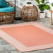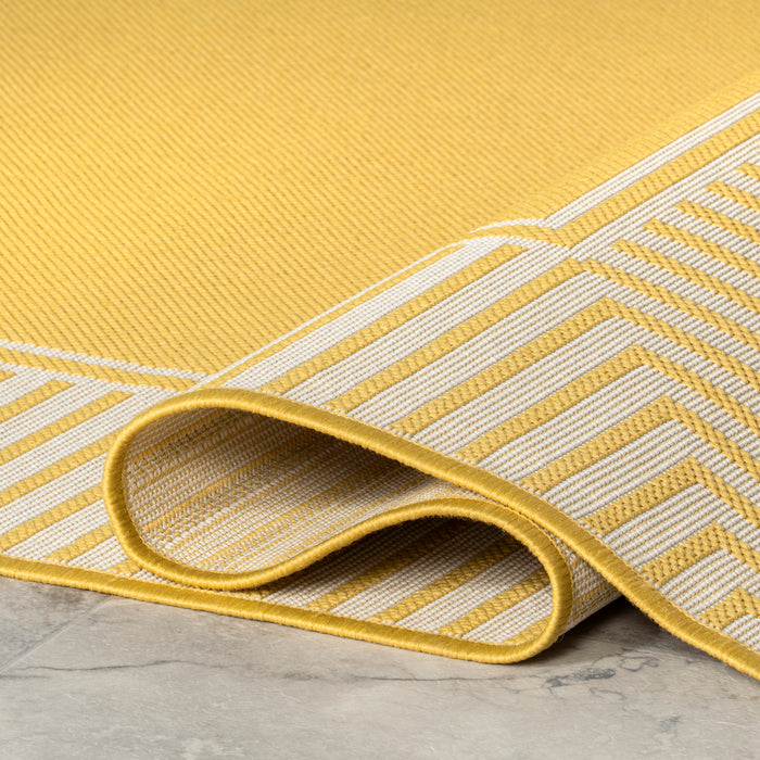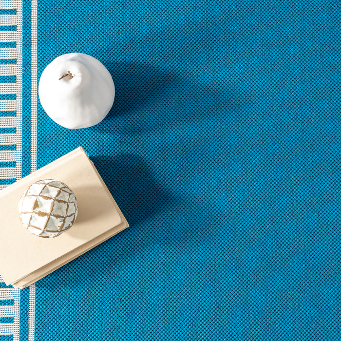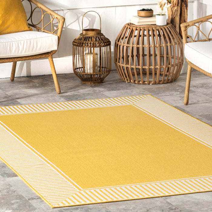Whoever said beautiful floor accents are only for inside the home hasn’t yet met an indoor/outdoor area rug. This casual rug will warm up any space with its simple yet beautiful striped border. Made from durable fibers that are perfect for any high traffic areas and will last for years to come. Kick back and relax with our easy to care for and pet-friendly area rugs.