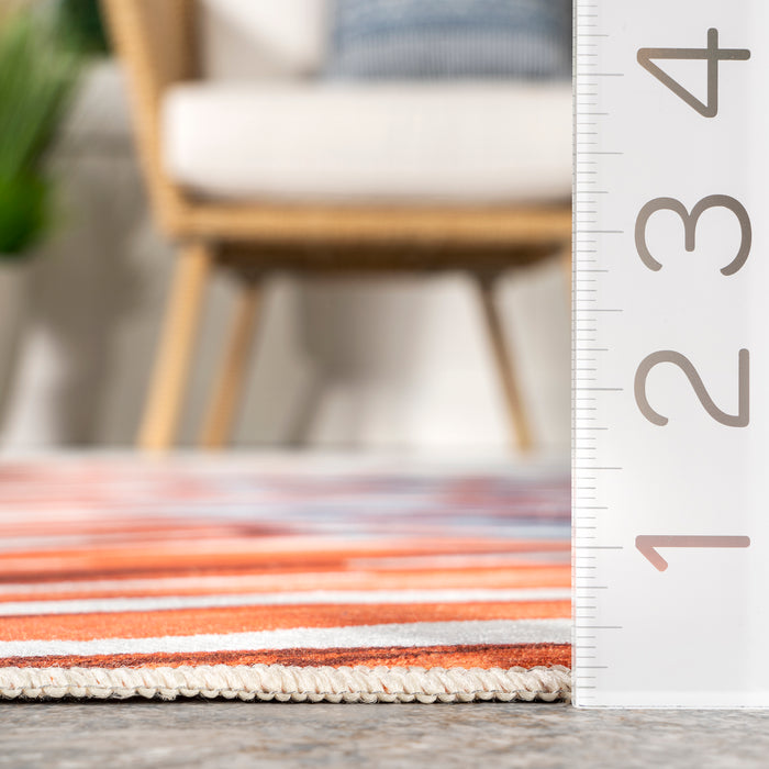 Life just got a little easier with this machine washable indoor/outdoor area rug! Made from sustainably-sourced premium synthetic fibers, our machine-washable rugs are spill and stain resistant making it perfect for those with kids and pets. Elevate your living room or place on your patio to complete your space. When that inevitable stain happens, roll your rug up and place it in your washing machine! Hang dry and simply put your rug in the desired place, with no rug pad required with our innovative non-slip backing. Kick back and relax with our easy to care for and pet-friendly area rugs.