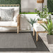 Whoever said beautiful floor accents are only for inside the home hasn’t yet met this contemporary indoor/outdoor area rug. This floor covering has neutral hues that is designed to blend seamlessly with any of your current décor and made with durable fibers to last for years to come. Place this rug in your dining room or on your patio to tie together your space. Kick back and relax with our easy to care for and pet-friendly area rugs.