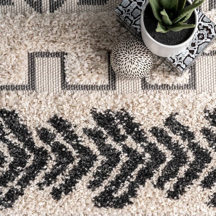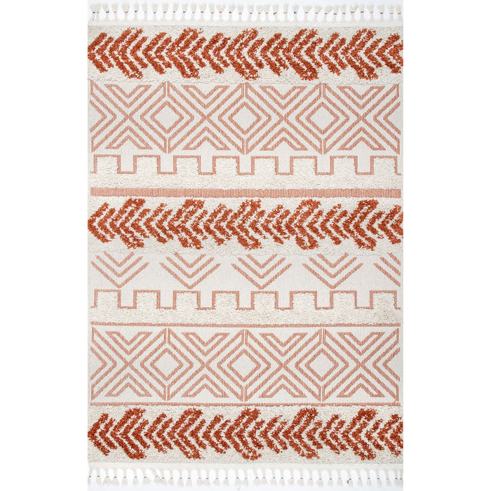 Step out of your comfort zone with a high-low, textured weave. This eye-catching tribal print will have your house feeling like a home in no time. The braided tassels at both ends add an extra ounce of flair to dress up any room.