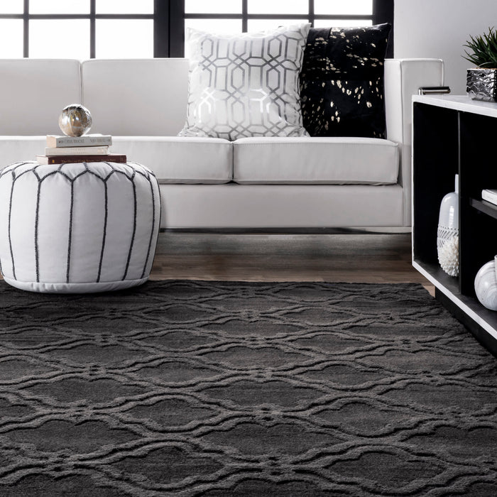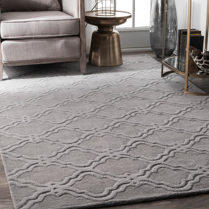 Elevate your space with this beautiful, geometric, trellis pattern. Hand tufted in India of 100% wool this rug is sure to make a statement in any room. Available in a variety of colors, choose the one that best suits your decor.