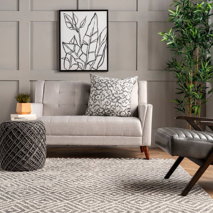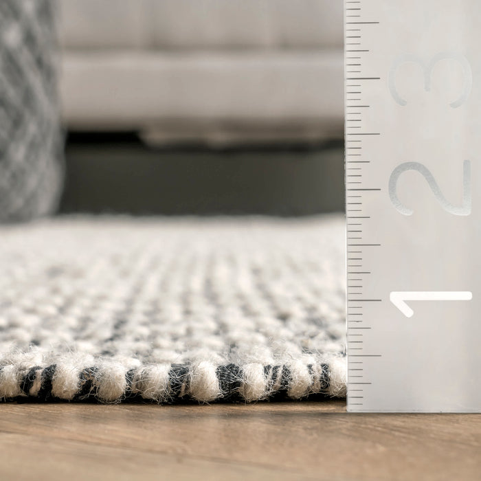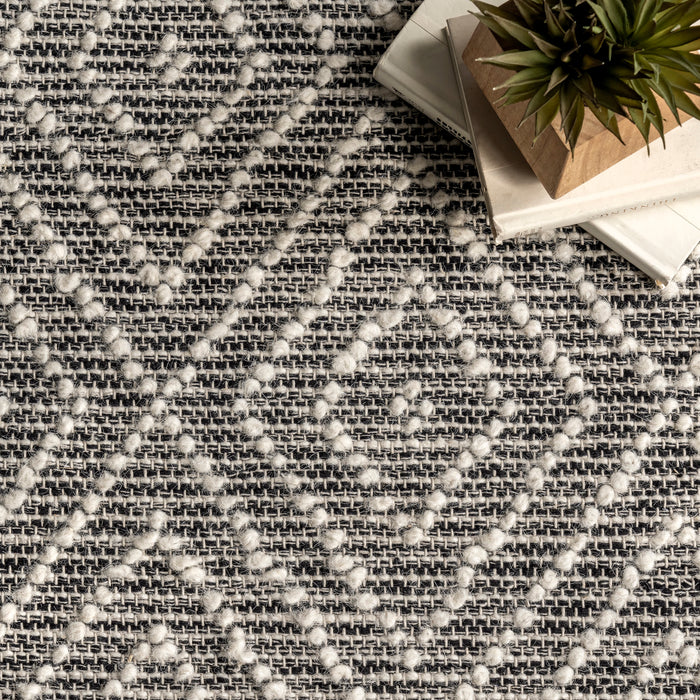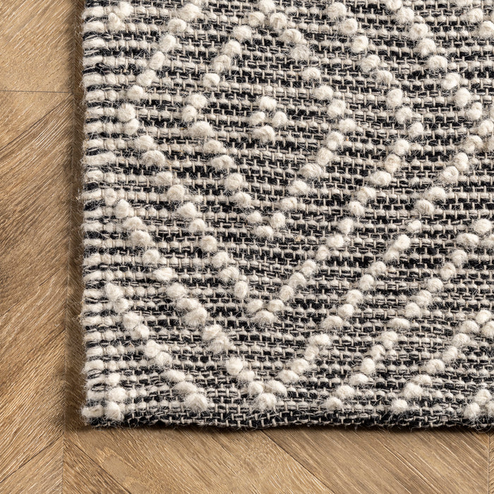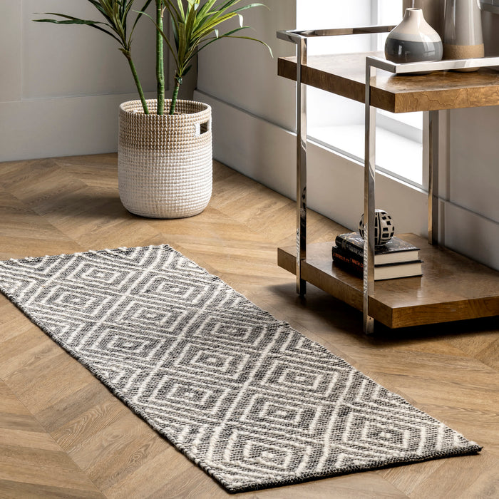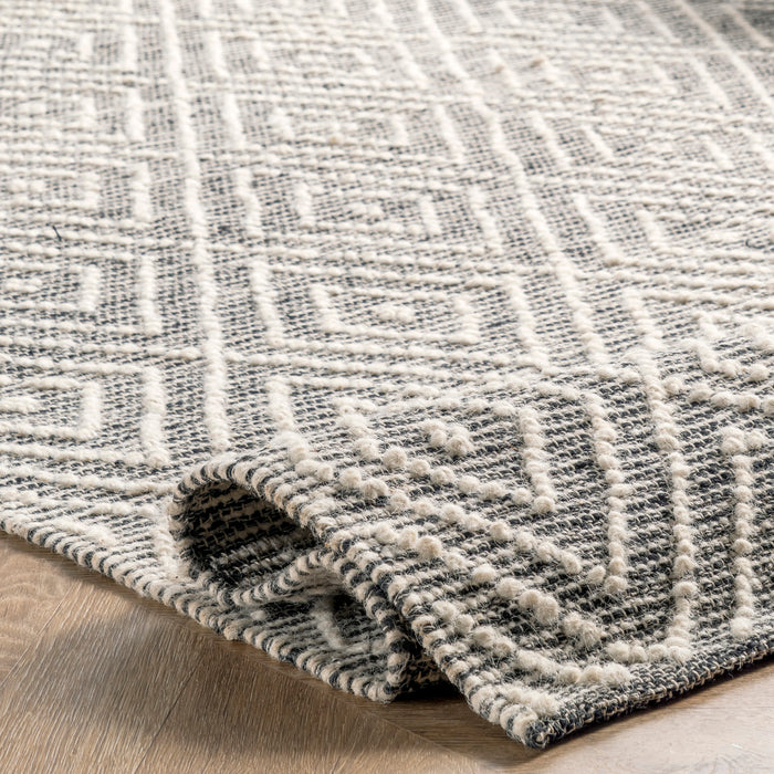 This wool rug will add the perfect amount of warmth, style, and comfort to any space in your home with its textured pile and detailed geometric pattern.