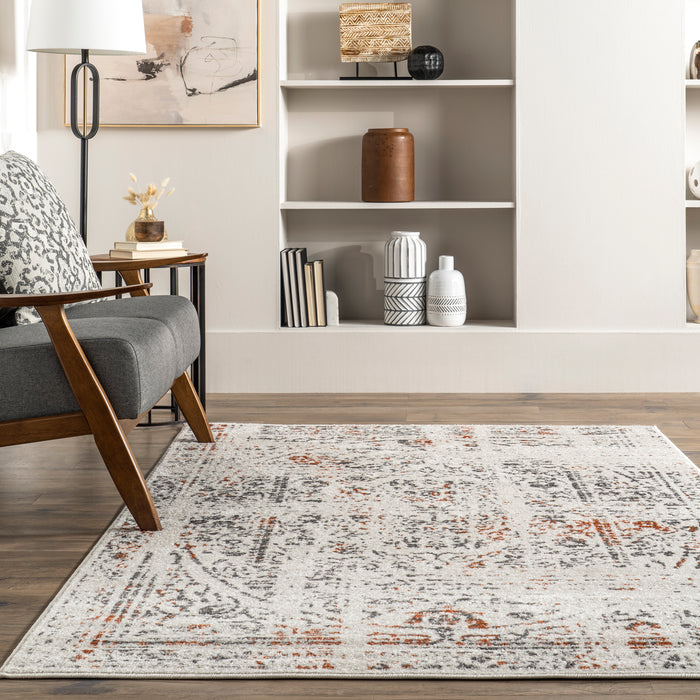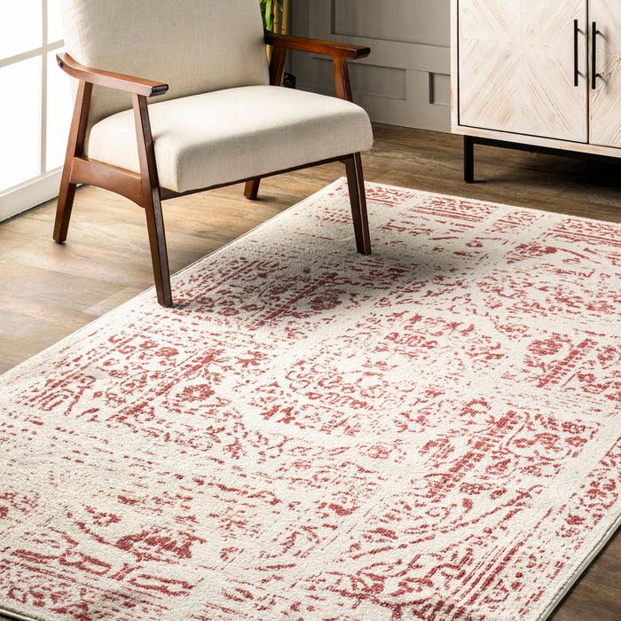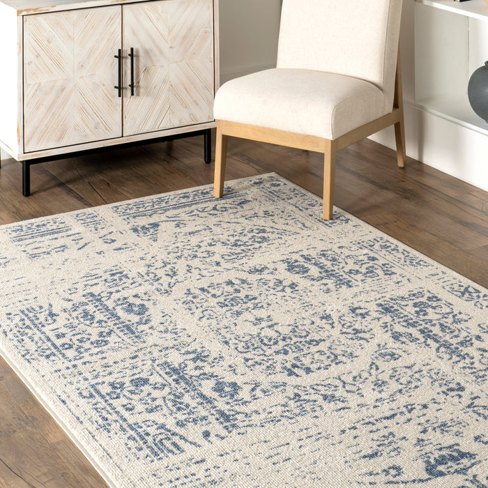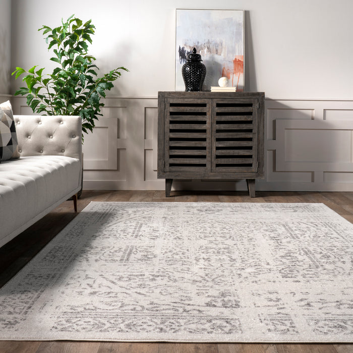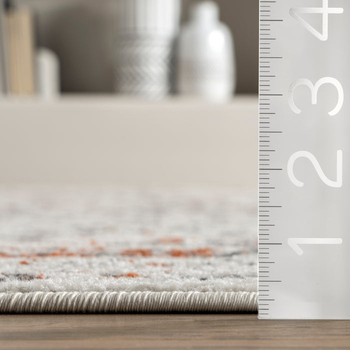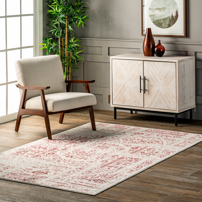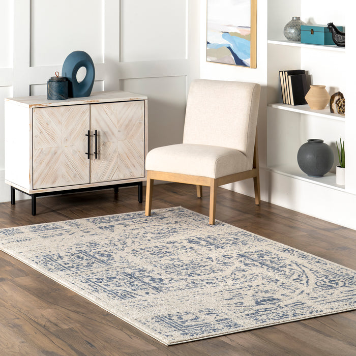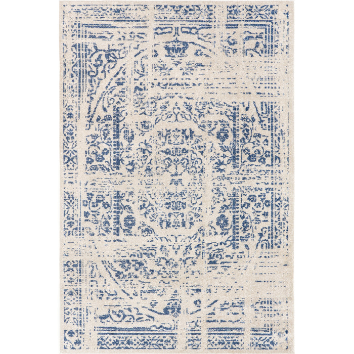 This distressed traditional area rug will be the finishing touch to any room it is placed in. With a beautiful monochrome rosette in the middle of the rug, this floor covering will pair perfectly with any décor from traditional to modern. Machine made in Turkey of soft synthetic materials this rug is built to last. Create the home you have always dreamed of with our pet-friendly and easy to care for area rugs.