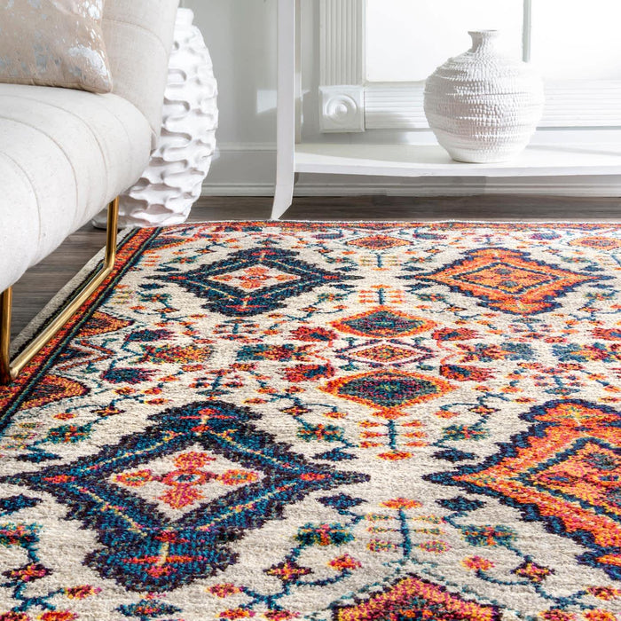 The vibrant diamond motifs are what make this rug unique. Each colorway is sure to make a statement in your home. Power-loomed construction ensures this rug will hold up to frequent foot traffic.