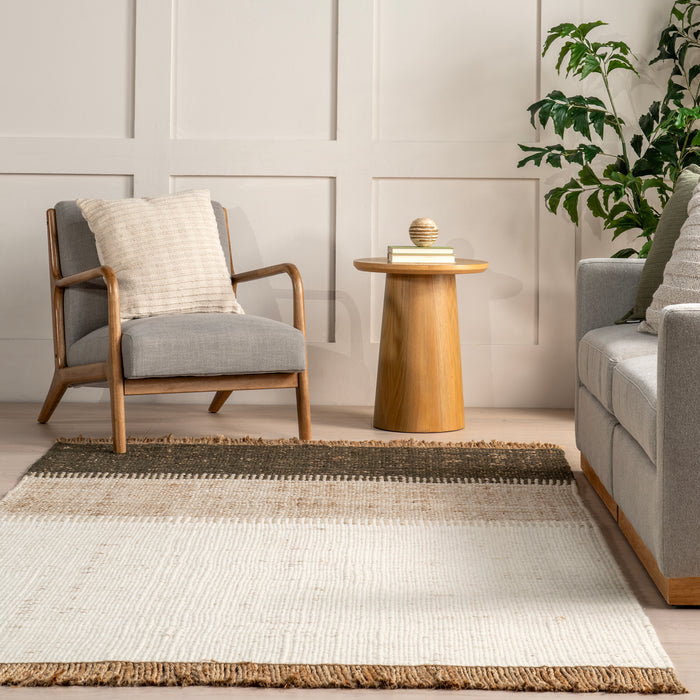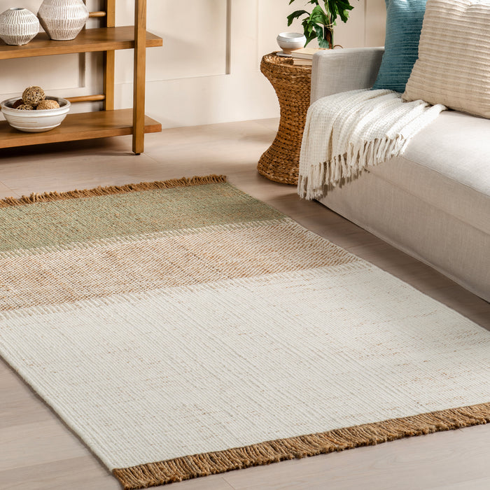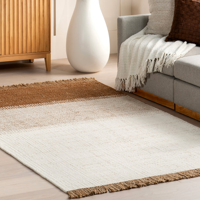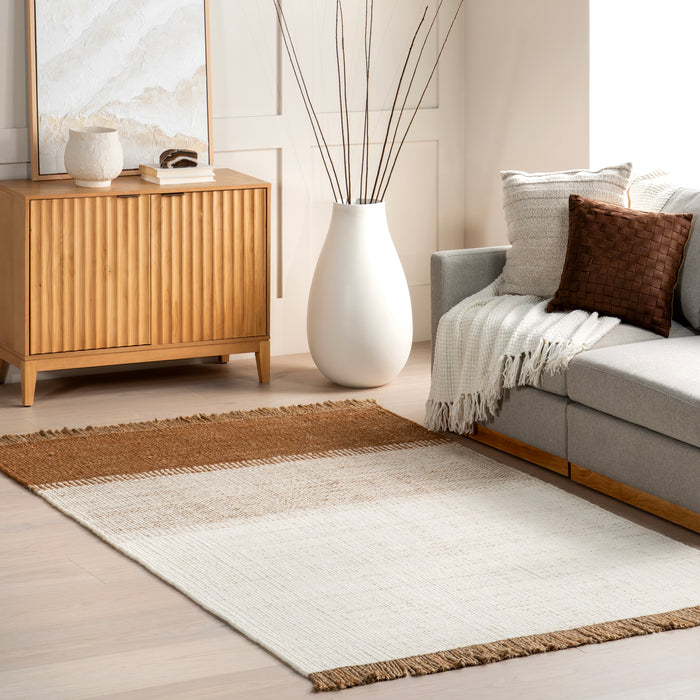 Nanala Bold Striped Jute Tasseled Area Rug