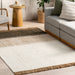 Discover the enchantment of our artisan-crafted rug, a harmonious blend of jute and wool that converge to form a textured, earthy work of art. The playful tassels introduce a dash of whimsical charm to your decor, highlighting the meticulous craftsmanship that shines through in each rug. Embark on a transformation of your space with this distinctive fusion of artistry and nature, seamlessly uniting style and authenticity