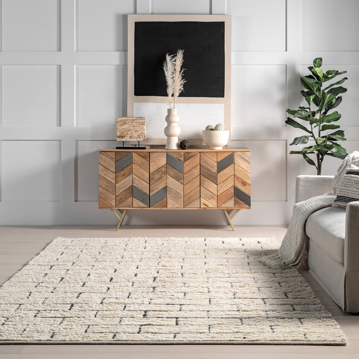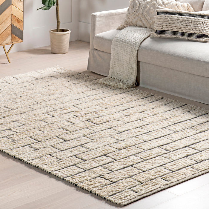 Add some depth to your space with this contemporary wool area rug. Made from a blend of wool and cotton fibers, this floor covering will surely make a statement in any room it’s placed in. The handmade textured rug features a beautifully detailed geometric brick-like pattern and blends seamlessly with any décor from modern to bohemian. Never settle for anything less than perfection with our pet-friendly and easy to care for area rugs.