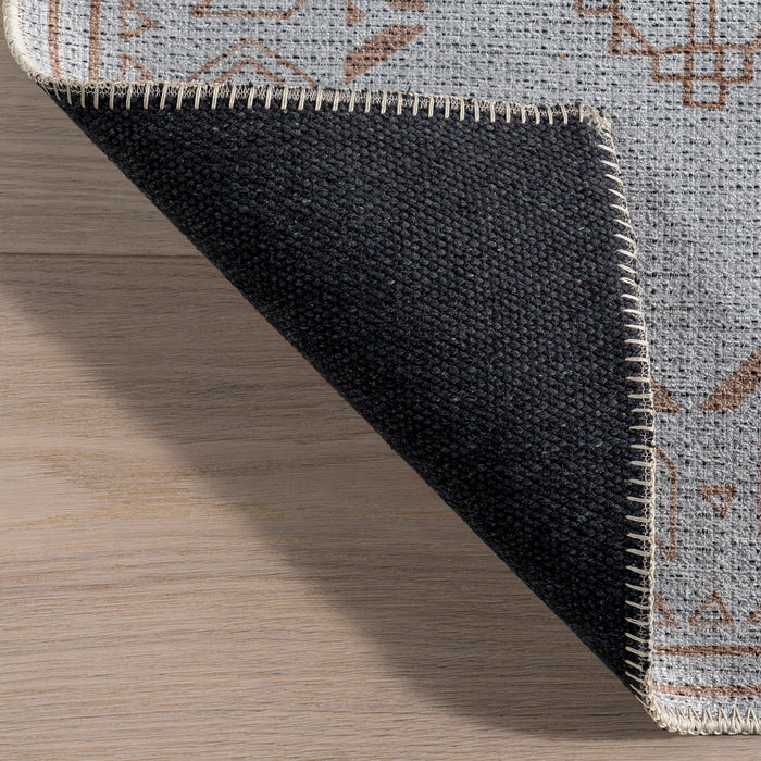 A rug you can't help but stop and stare! This machine washable area rug features a tribal design. Made from sustainably-sourced premium fibers, our machine-washable rugs are spill and stain resistant making it perfect for those with kids and pets. When that inevitable stain happens, roll your rug up and place it in your washing machine! Hang dry and simply put your rug in the desired place, with no rug pad required with our innovative non-slip backing. Make the most of your time at home with our pet-friendly and easy to clean area rugs.