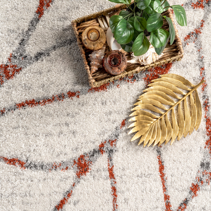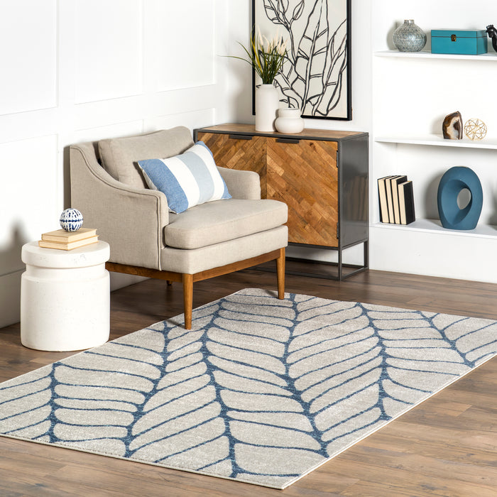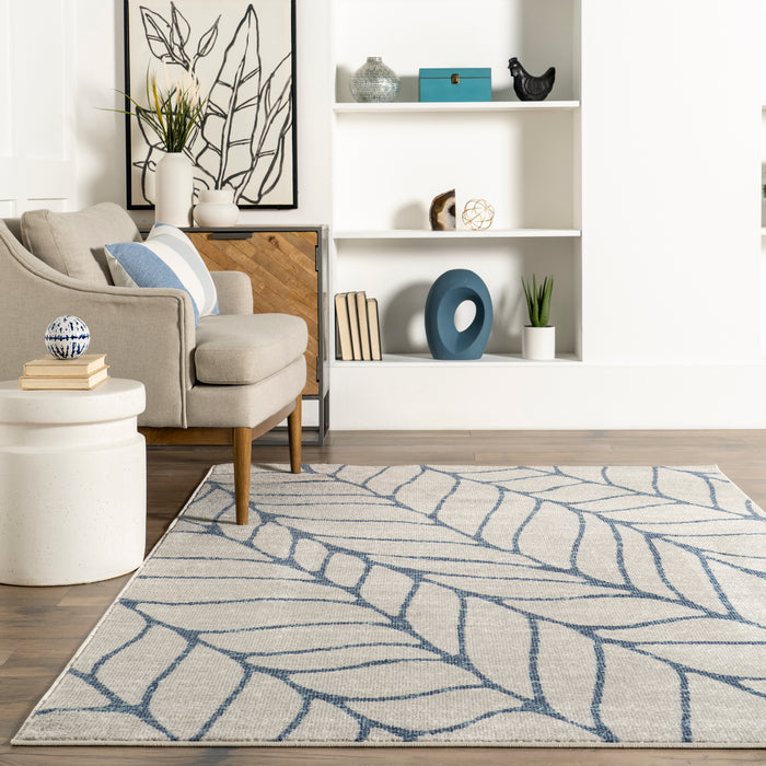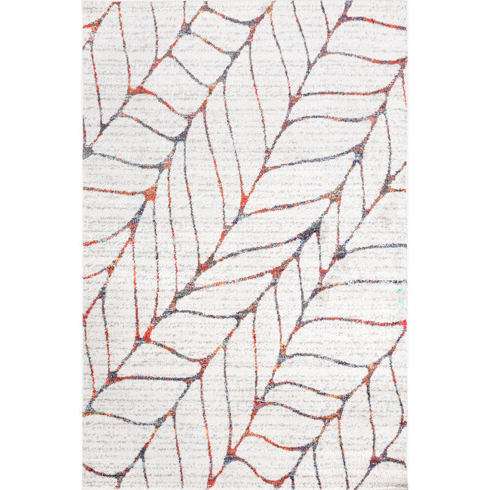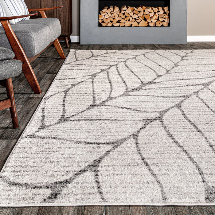 Add a touch of contemporary flair with this floor covering. The abstract leaf pattern gives off a calming feel of nature while adding comfort to your home. Machine-made in Turkey of soft synthetic materials this rug is built to last and comfortable underfoot.