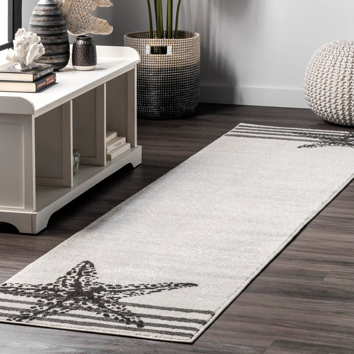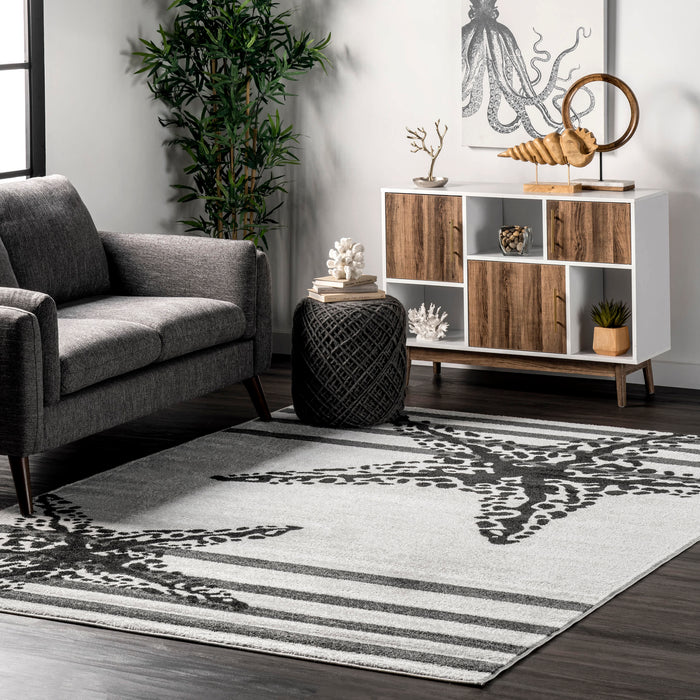 Calm the vibe in your coastal-designed living space with this starfish area rug. Machine-made from durable synthetic fibers this rug is built to last and adds a touch of luxury wherever it is placed.