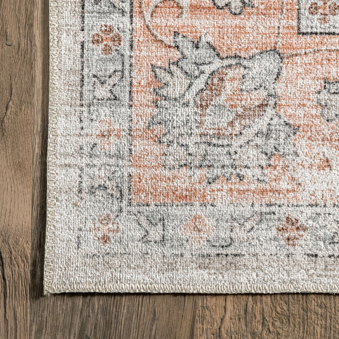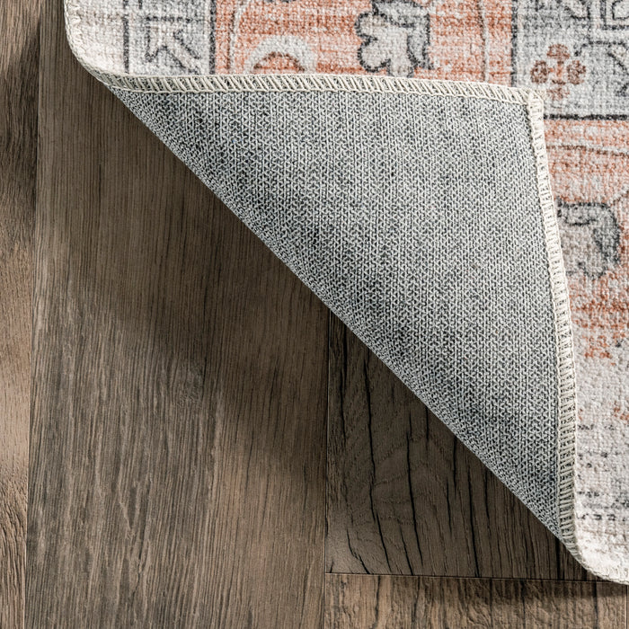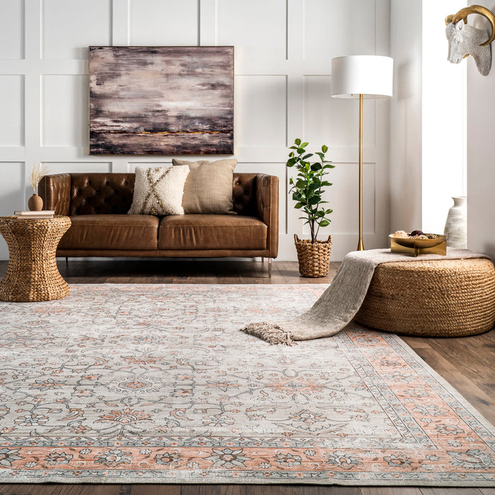 Complete your space with our faded floral machine washable area rug. Made from sustainably-sourced, premium recycled synthetic fibers, this washable area rug is made to withstand regular foot traffic. Our machine-washable collection is functional and stylish to keep up with your busy lifestyle. Simply roll your rug up, throw it in the washing machine, and you're done! Elevate your space with our pet-friendly and easy to clean area rugs.
