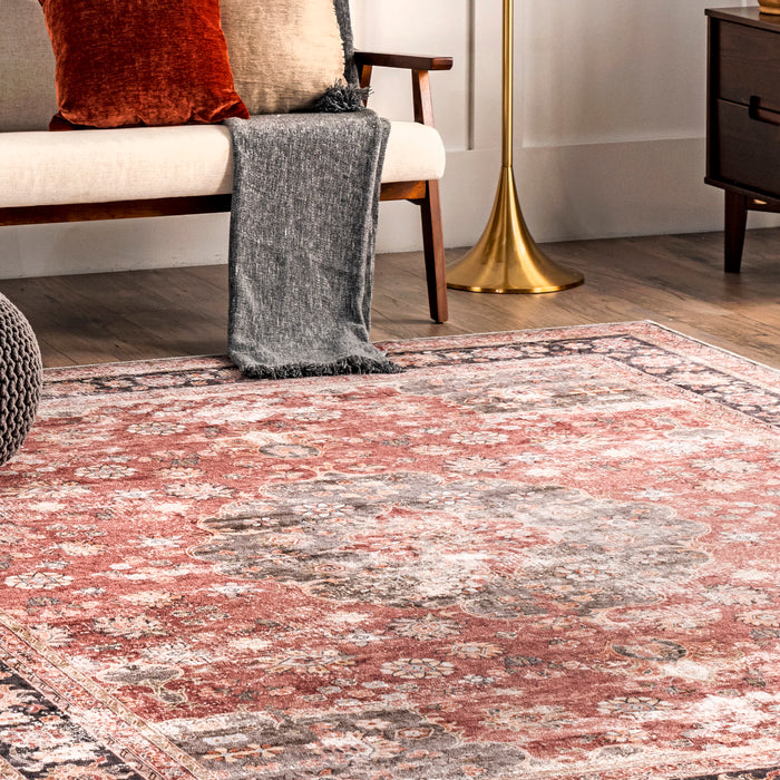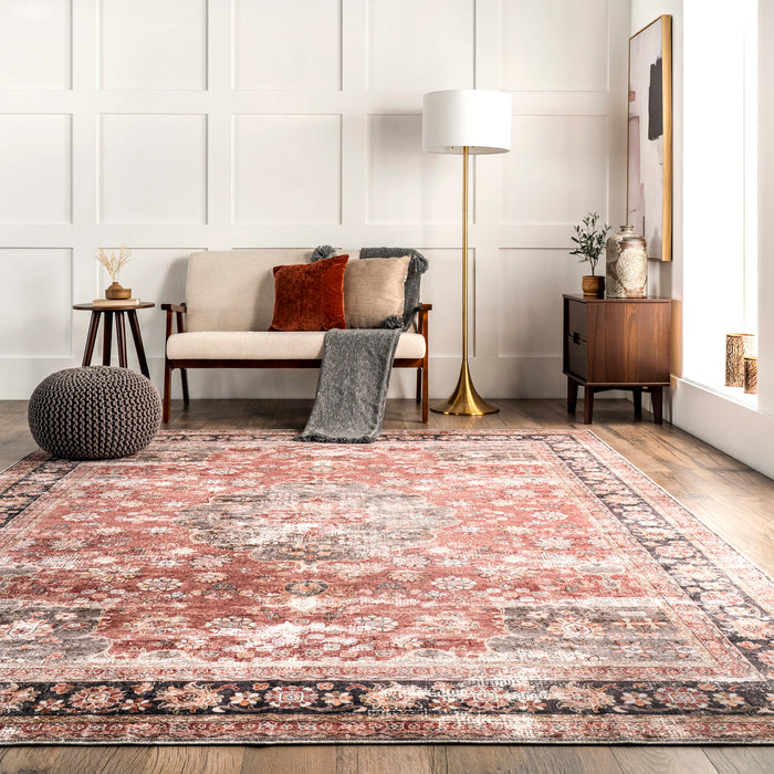 A classic look with a modern touch, this traditional Perisan machine washable area rug will complete any space in your home. Made from sustainably-sourced, premium recycled synthetic fibers, this washable area rug is made to withstand regular foot traffic. Our machine-washable collection is functional and stylish to keep up with your busy lifestyle. Simply roll your rug up, throw it in the washing machine, and you're done! Create the home of your dreams with our pet-friendly and easy to clean area rugs.