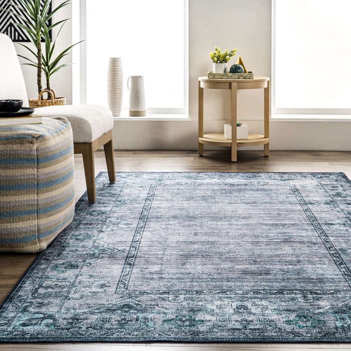 Classic style with a modern twist! This distressed persian machine washable rug will be the finishing touch to your space. Made from sustainably-sourced, premium recycled synthetic fibers, this washable area rug is made to withstand regular foot traffic. Our machine-washable collection is functional and stylish to keep up with your busy lifestyle. Simply roll your rug up, throw it in the washing machine, and you're done! Create the home you've always wanted with our pet-friendly and easy to clean area rugs.