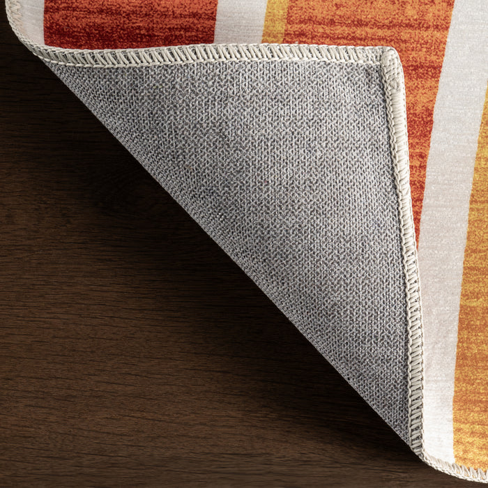 - Stain-Resistant Material: Our machine washable rugs are crafted from synthetic materials that are stain-resistant, lightweight, and easy to clean. The stain-resistant properties ensure that the rug maintains its vibrant colors and patterns, even after enduring the demands of everyday use. If your rug is located in an area that receives direct sunlight, regularly rotate your rug to maintain its appearance.