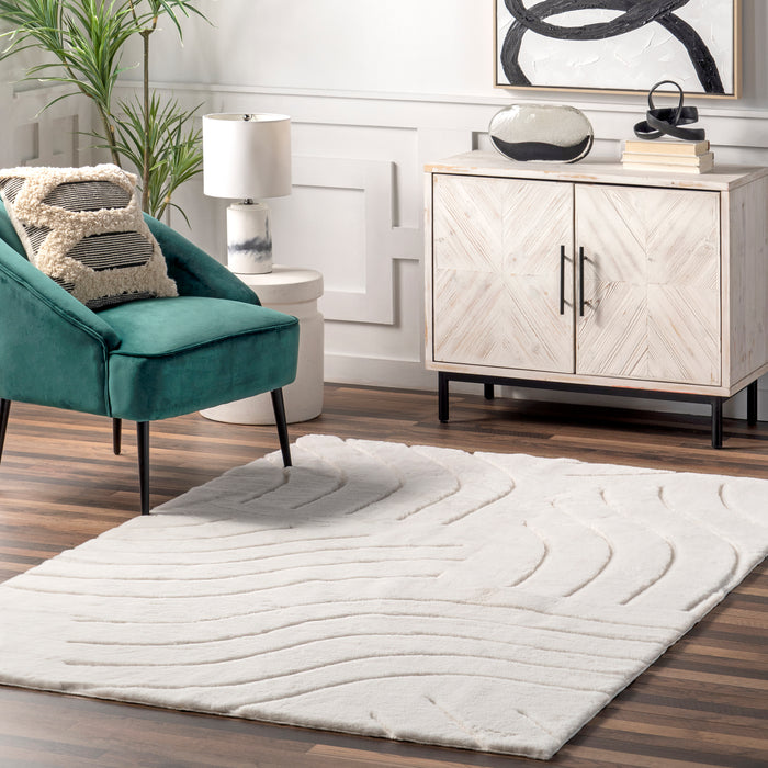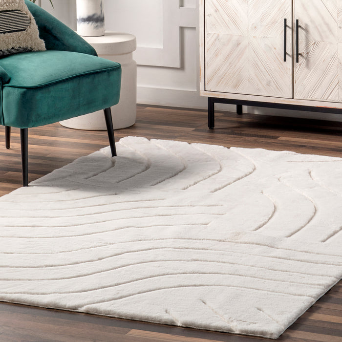 Create a cozy environment with this faux rabbit machine washable area rug. This floor covering is machine made of synthetic fibers that give an incredibly soft texture underfoot. With a geometric wavy design, this rug will give the perfect modern touch to your space. Our machine-washable rugs are spill and stain resistant making it perfect for those with kids and pets. When that inevitable stain happens, roll your rug up and place it in your washing machine! Hang dry and simply put your rug in the desired place, with no rug pad required with our innovative non-slip backing.