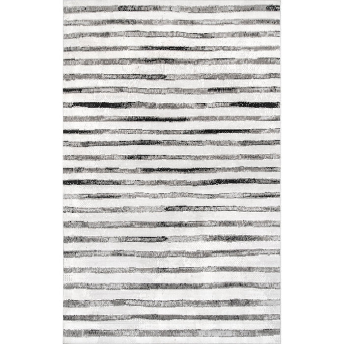 This unique abstract stripe design fits seamlessly into contemporary decor. Machine made from durable, easy to clean polypropylene fibers, this piece is sure to make a beautiful addition to your home.