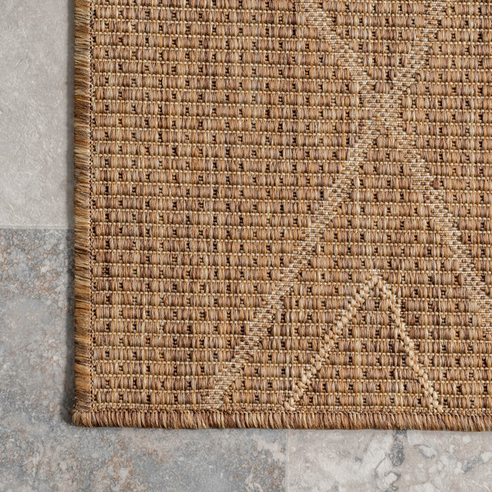 Whoever said beautiful floor accents are only for inside the home hasn’t yet met this contemporary indoor/outdoor rug. Designed to stand up to the elements while adding a modern charm with moroccan stripes lining the rug. This piece is so versatile that you might find yourself not only using it on your patio, but in your living or dining room as well! Its time to create your own oasis with our easy to care for and pet-friendly area rugs.