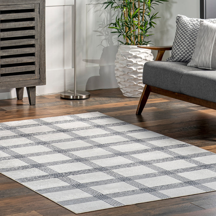 Lenci Modern Plaid Machine Washable Area Rug