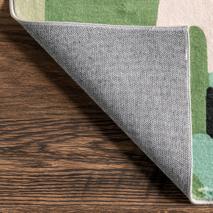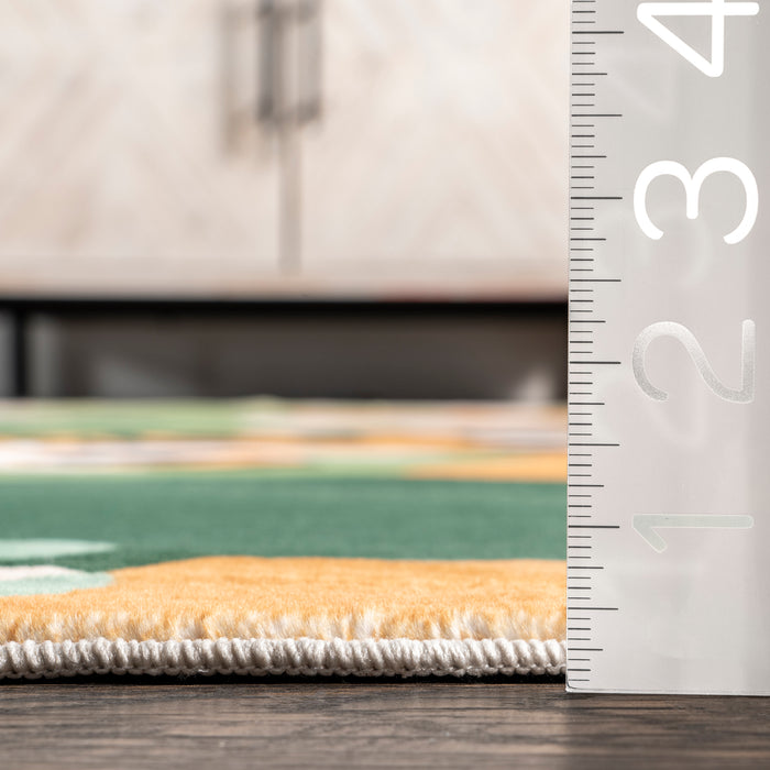 Say hello to your little one's new oasis! Perfect for a nursery, playroom, or any area needing some fun, this graphic machine washable area rug features a pattern ready to cozy around. The luxurious composition offers a soft texture under foot. Get the look of a one-of-a-kind rug, in materials that are durable and ready for wear and tear! To clean, simply roll up and place in your washing machine with cold water. Whether it's playtime with the kids or reading a story, this area rug captures it all. Enjoy the rich interplay of stunning color and incredible texture. Make the most of your time at home with our pet-friendly and easy to clean area rugs.
