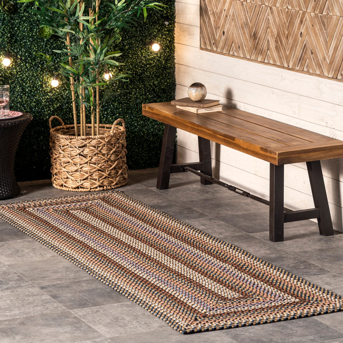 Elevate your space inside or outside your home with this beautiful braided rug. Made from durable synthetic fibers this rug is built to last and adds a touch of luxury wherever it is placed.