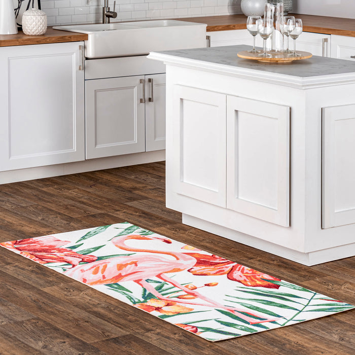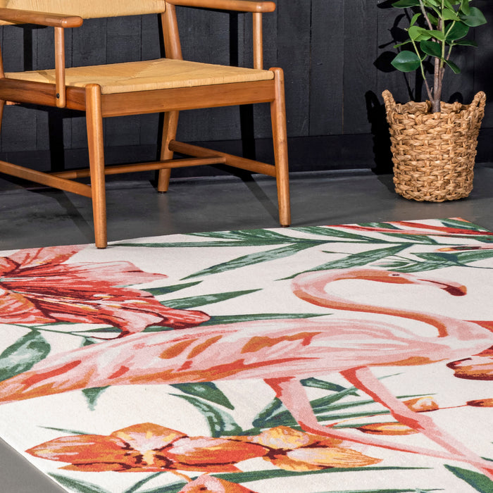 Get ready to turn heads with this floral flamingo indoor/outdoor area rug. Designed to stand up to the elements while adding a touch of charm to your surroundings whether you place this in your living room or on your patio. This floor covering pairs perfectly with any existing coastal or contemporary décor. Liven up your space with our easy to care for and pet-friendly area rugs.