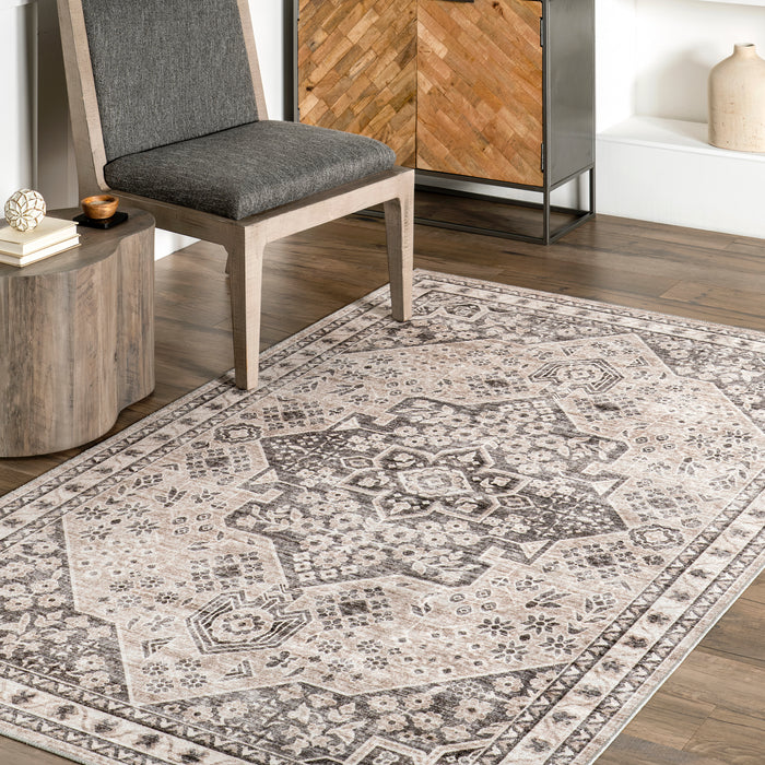 Eira Medallion Stain-Resistant Machine Washable Area Rug