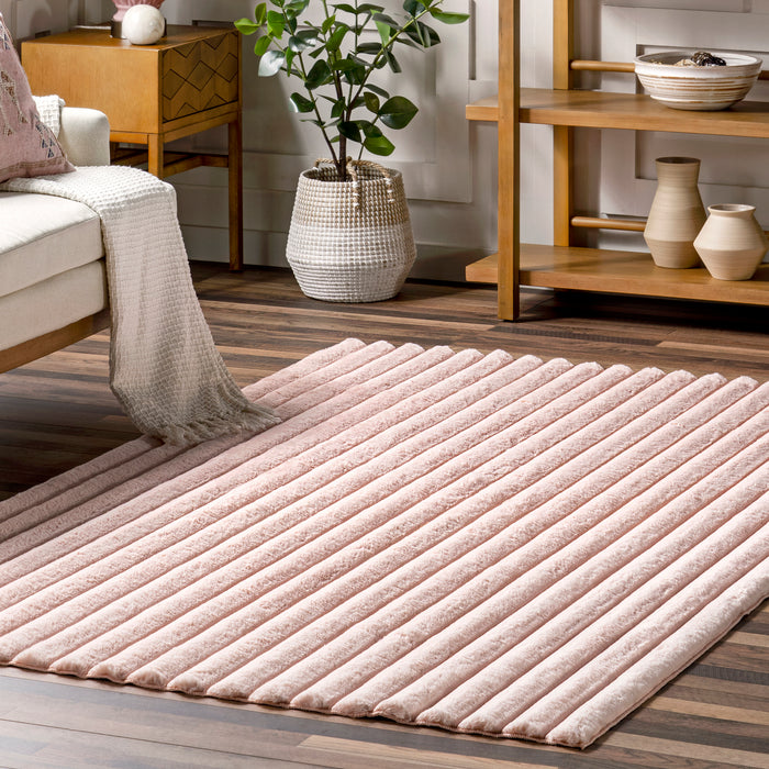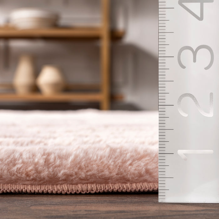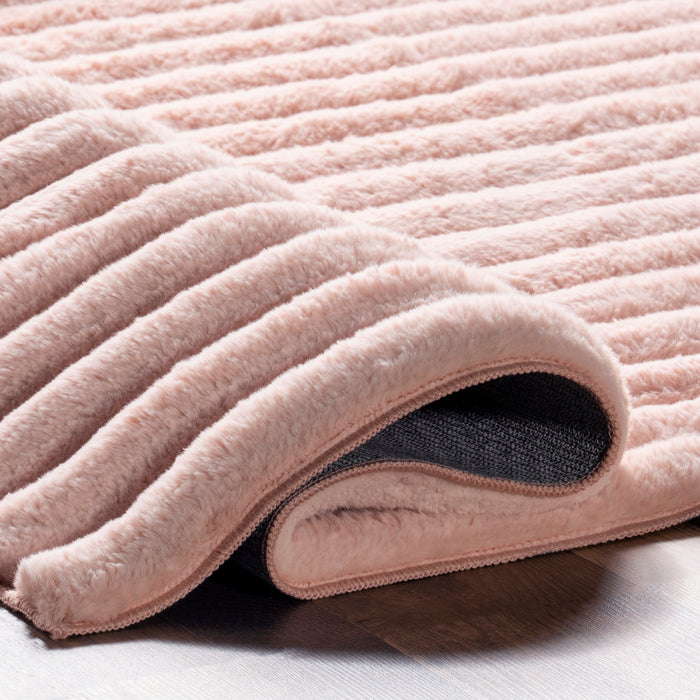 Meet our new show-stopper like no other! This faux rabbit fur rug is crafted of the softest fibers, to elevate the environment in any room you place it in. This area rug is inviting to touch and can be placed at the foot of your bed or a corner of the reading room to create a comfortable space. Sit back, relax, and enjoy the look of a special floor covering that modern-made materials can provide.